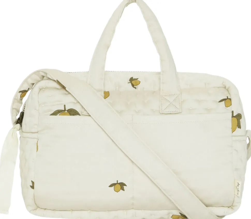 Funktionel pusletaske i 100 procent økologisk bomuld. På ydersiden af tasken er der en stor lomme. Designet med skulderrem, samt et grab-and-go håndtag. Tasken lukkes med lynlås. Et must-have for alle dukkeforældre. Højde: 18 cm. Bredde: 24 cm. Dybde: 11 cm.