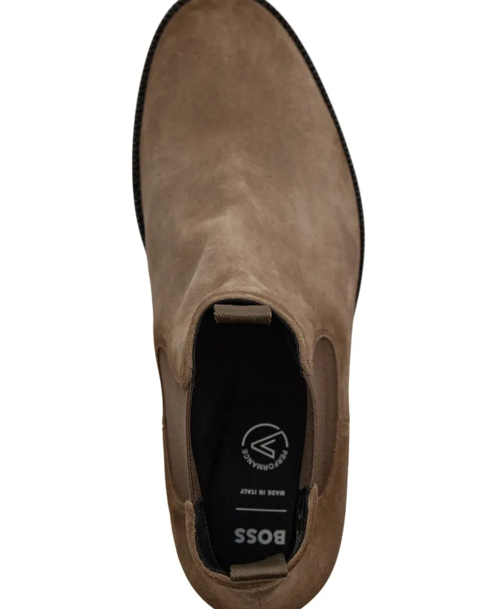 Disse italienske BOSS herretøj Chelsea-støvler har fleksible sidepaneler og en holdbar ydersål og er fremstillet til komfort hele dagen. Bløde ruskindsoverdele.