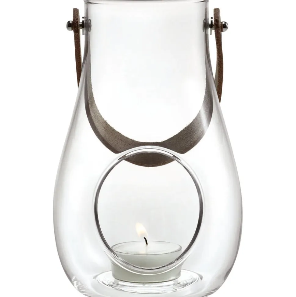 Design with Light lanternen, her den lille version klart glas på 16 cm, gør de særlige øjeblikke endnu smukkere – både indenfor og ude. Designet af Maria Berntsen skaber Design with Light lanternen et stemningsfuldt levende lysskær på altan og terrasse. De mundblæste lanterner findes også i frostet glas med det karakteristiske læderhåndtag. Den runde åbning er håndlavet af Holmegaards erfarne kunsthåndværkere og gør hver lanterne unik.