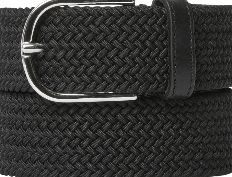 Elastisk fletbælte fra SADDLER. 35mm bredt med eksklusivt blankt spænde. Bæredygtigt produceret i Italien. Egner sig til både jeans og casual brug. Den høje kvalitet på elastikken i bæltet sikrer en lang levetid. Bæltelængden er målt fra bæltespændet til 15 cm fra spidsen af bæltet.
