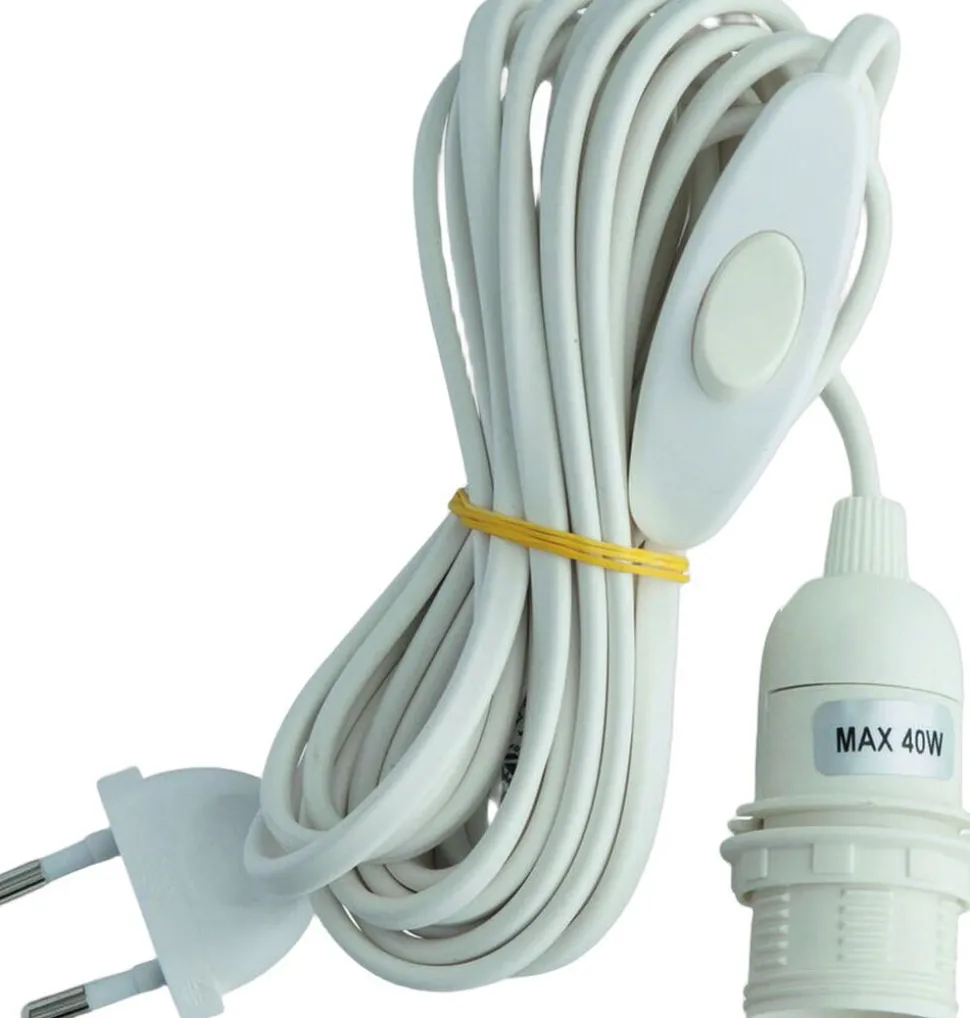 4 m. el-kabel m. fatning til lille pære. Tænd og sluk funktion. Kun til indendørs brug.