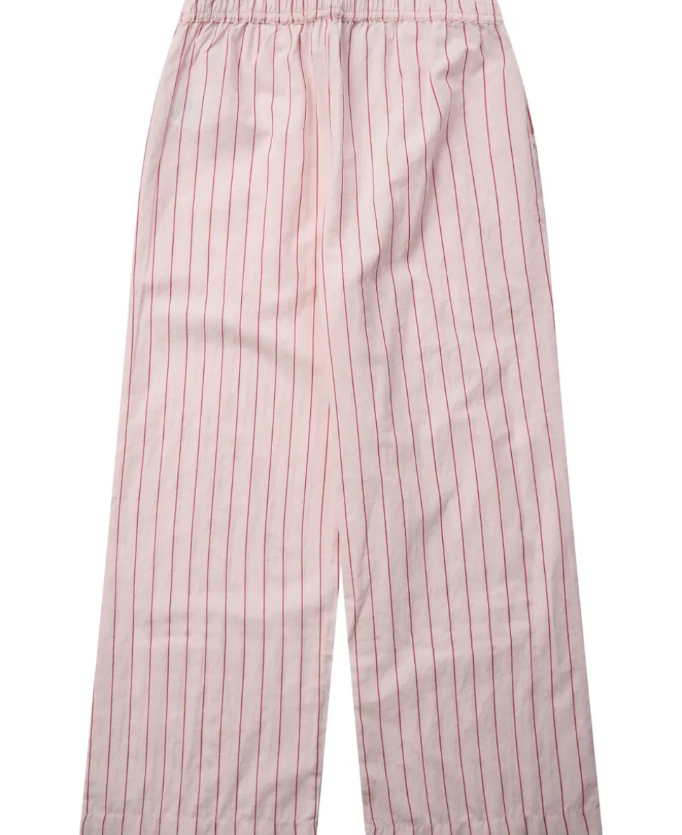 Bukser fra Magasin du Nord Collection i den blødeste kvalitet af 100% økologisk bomuld med GOTS-certificering. Bukserne er enkle i modellen med det fineste, stribede print, elastik i taljen, et dekorativt bindebånd, sidelommer samt lige bukseben med en løs pasform. Et par søde bukser i en lækker kvalitet.