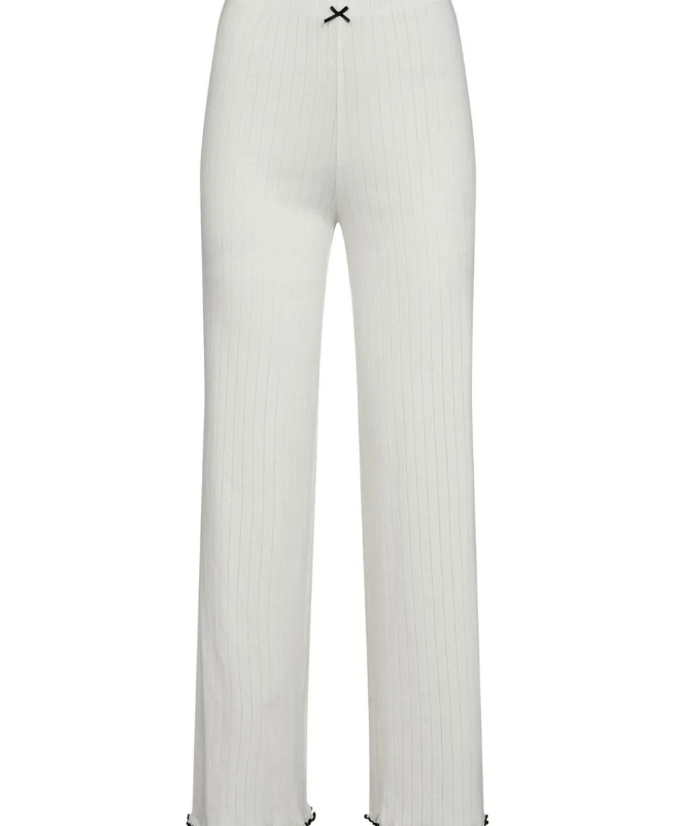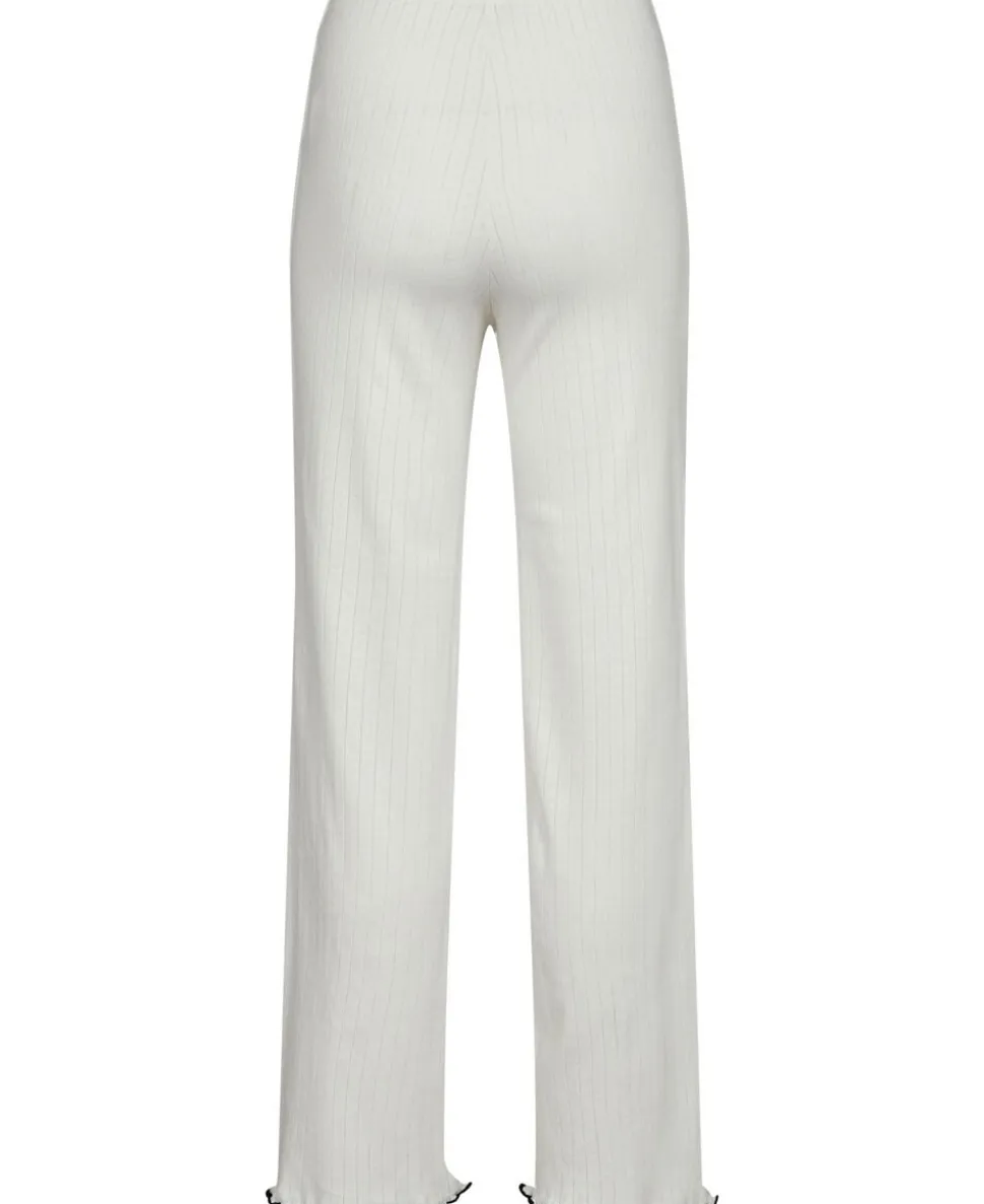 Bukser fra Magasin du Nord Collection i den blødeste kvalitet af 100% økologisk bomuld med GOTS-certificering. Bukserne er enkle i modellen med det fineste hulmønster, sløjfedetalje, bølgekant i bunden samt en smal elastik i taljen. Et par komfortable bukser i den lækreste kvalitet.