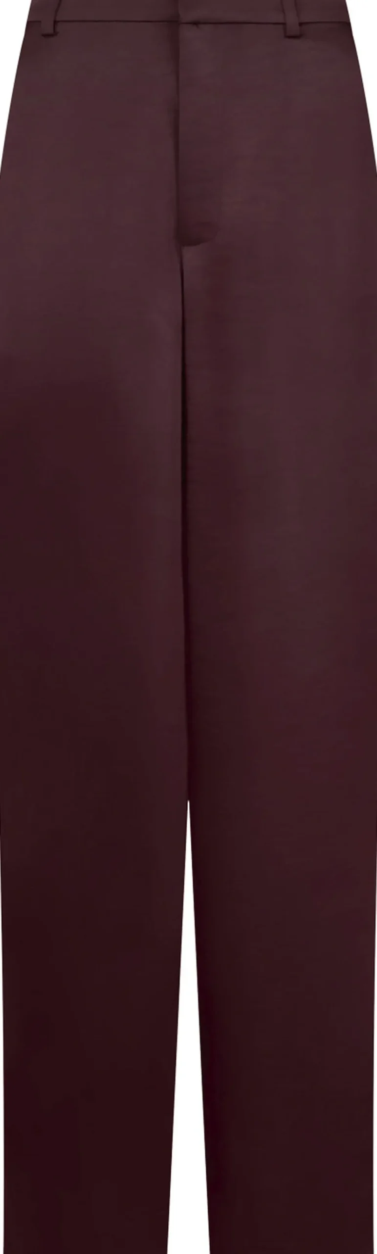 Bukser i en kraftig satin. Bukserne er højtaljede og har lige ben med vidde. De lukkes med skjult lynlås og hægte, har bæltestropper i taljen og lommer i siden. Modellen er iført størrelse 36.