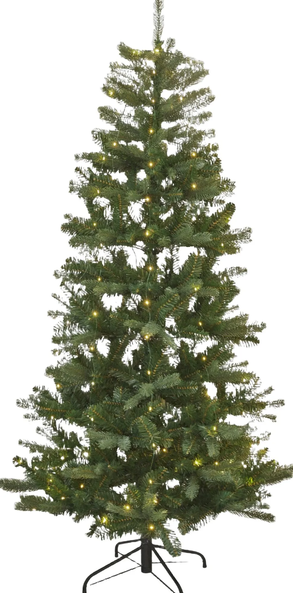 Klassisk juletræ i en flot naturtro grøn farve. Der er monteret lys på træet, som lyser med et varmt hvidt LED lys.
