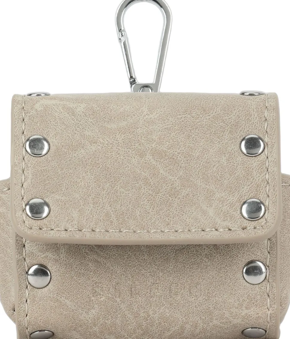 Mød Esme mini clip bag – hvor funktionalitet møder cool design. Fremstillet i slidstærkt, tekstureret vegansk læder med sølvfarvede nitter, er denne kompakte taske skabt til opbevaring af dine AirPods, earbuds, nøgler eller andre småting. Den sikre klaplukning holder dine ting på plads, mens den robuste metalklips gør det nemt at fastgøre den til din taske, bælte eller bukser.