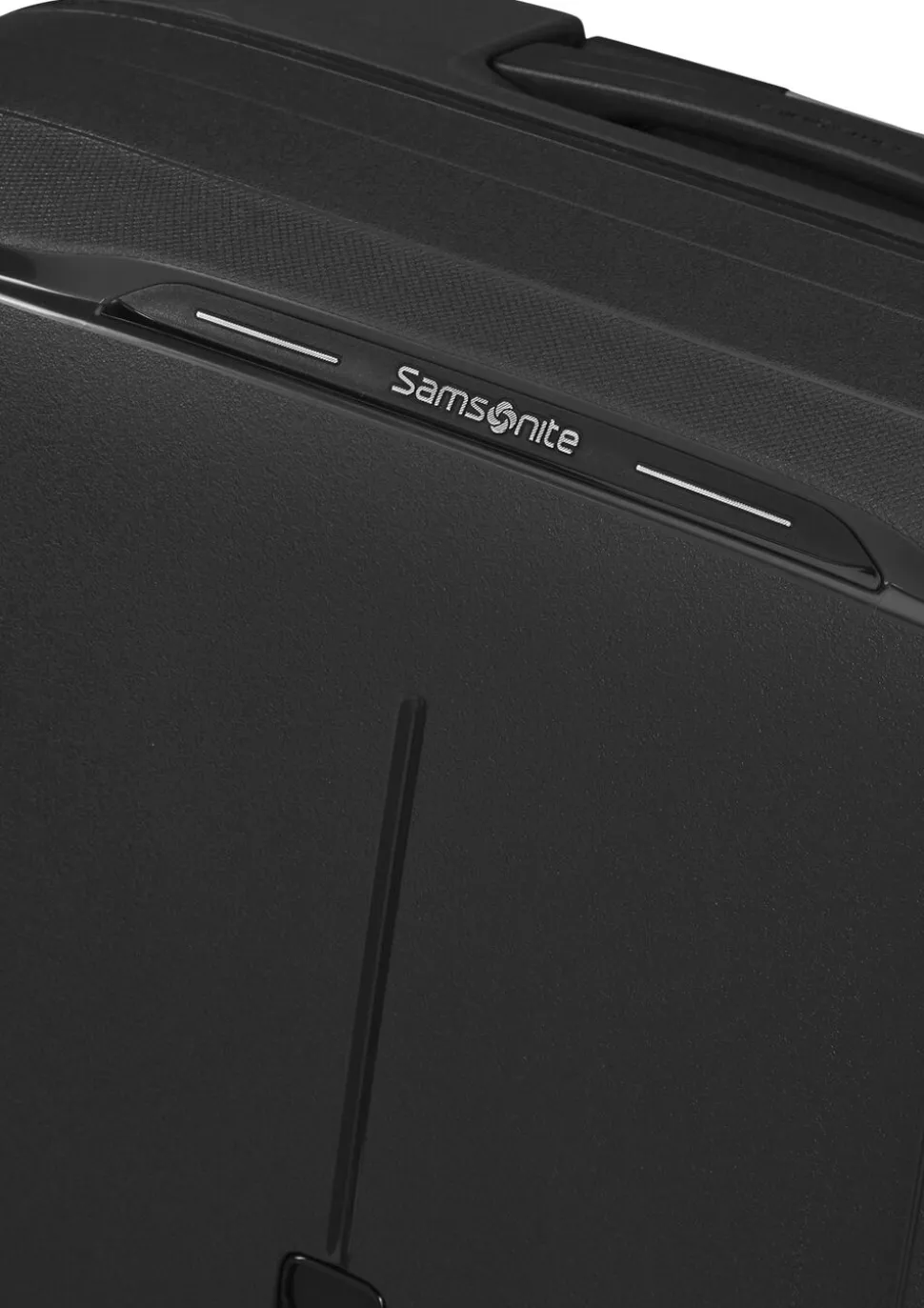 Kabinekuffert med 4 hjul, lavet af minimum 70% genbrugt polypropylen, stoffet indvendigt er lavet af genbrugte pet flasker,3 punkts TSA lås, dobbelt trollystativ, 2 aftagelige pakkeposer,2.6 kg,navneskilt,rumindhold 39 l, 5 års garanti