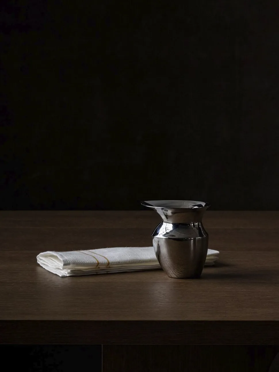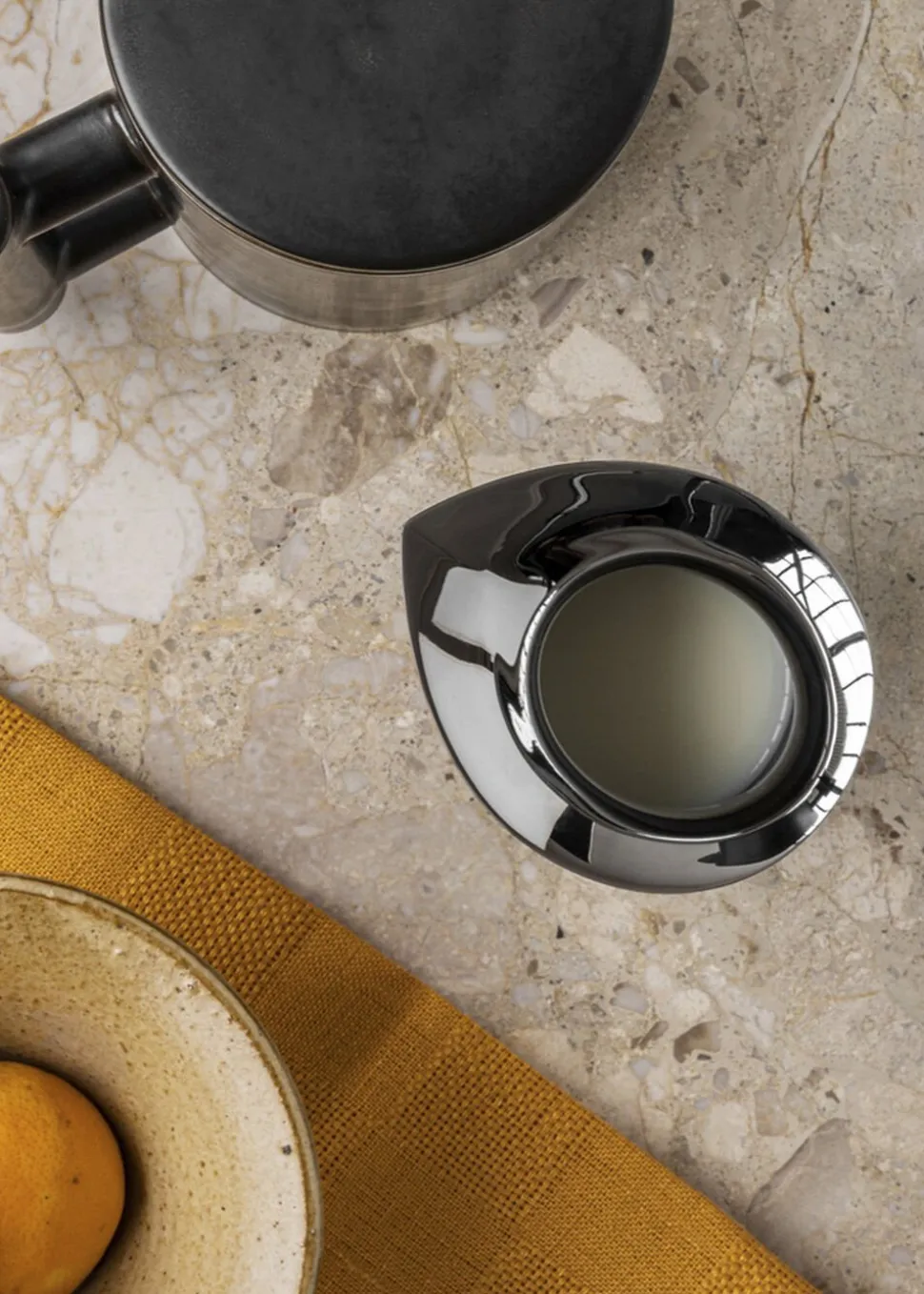 A modern interpretation of the classic Roman vessel, the Etruscan Jug serves milk or cream with minimalist elegance. The diminutive design is shaped from mirror-polished stainless steel for a bright, reflective finish that complements any and every table setting. Perfectly proportioned with a wide rim spout for easy pouring, it sits comfortably in the hand, making it both a delight to use and to look at. [dimensions-start] H: 10,5 cm, W: 8,8 cm, D: 10,8 cm, Ø: 8,2 cm [dimensions-end] [materials-start] Stainless steel [materials-end] [additional-resources-start] DOWNLOADS PRODUCT FACT SHEET 2D/3D FILES [additional-resources-end]