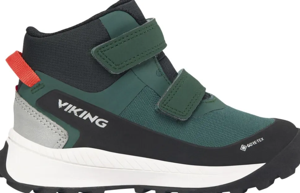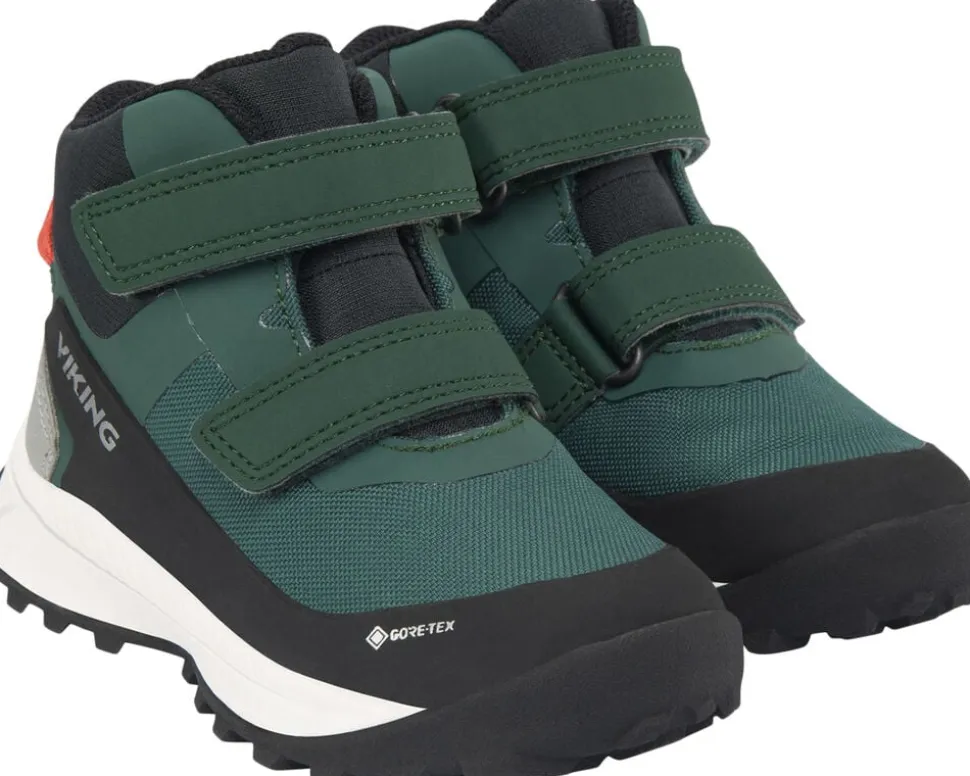 Hjælp dit barn med at sætte det lange ben foran med Expower Mid GTX 2V, Vikings bedste børnehavesko, der er propfyldt med førsteklasses funktioner og genbrugsmaterialer. For eksempel vil den vandtætte GORE-TEX membran uden PFC, holde fødderne behagelige og tørre under våde forhold, og den forstærket overdel fremstillet af et slidstærkt og holdbart materiale, forsynet med store reflekterende detaljer give bedre synlighed. I ydersålen af gummi giver en rille mulighed for at holde flyverdragten på plads, mens Vikings Ultimate Grip Concept giver et uovertruffent greb på alle overflader.