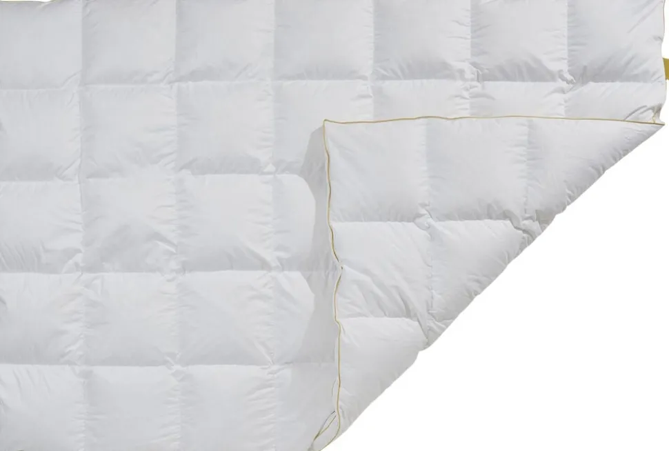 Quilts of Denmark® hylder FEJØ med en eksklusiv dyne- og pudeserie, der er fremstillet det fineste satin vævede bomuld med fyld af moskus dun den høje kvalitet er understreget med en gylden piping/kant. Sortimentet omfatter såvel en luksuspude, samt helårsdyner i de gængse størrelser og varmeklasser.