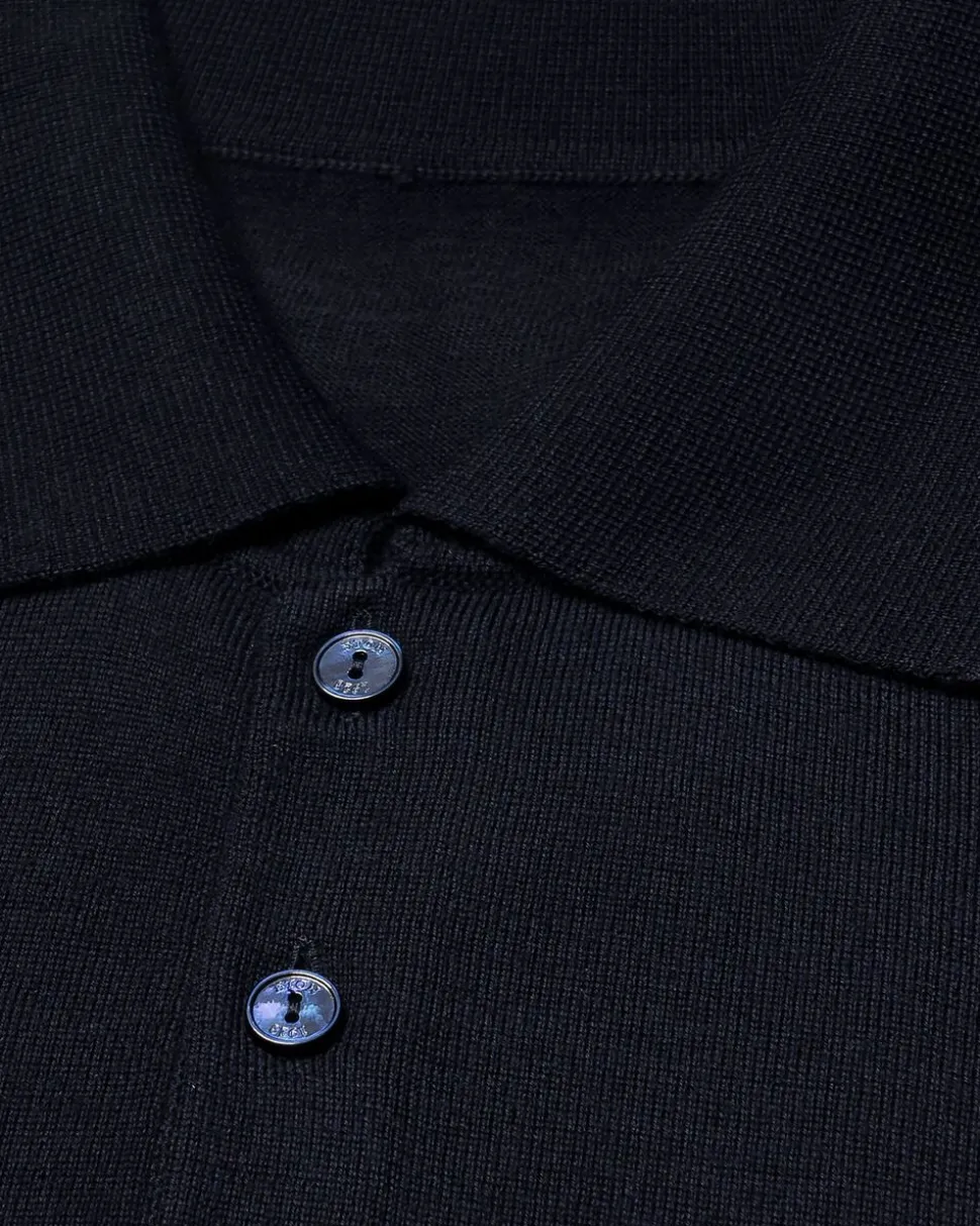 En polotrøje fremstillet af 100 % ekstra fin merinould, strikket i 14 gauge maskesting af traditionsrige strikkere i Italien. Den er designet med en struktureret strikket krave og manchetter og afsluttet med perlemorsknapper og har en glat finish og letvægtsfølelse – en raffineret strik, der er ideel til afslappet påklædning og smarte lag på lag.