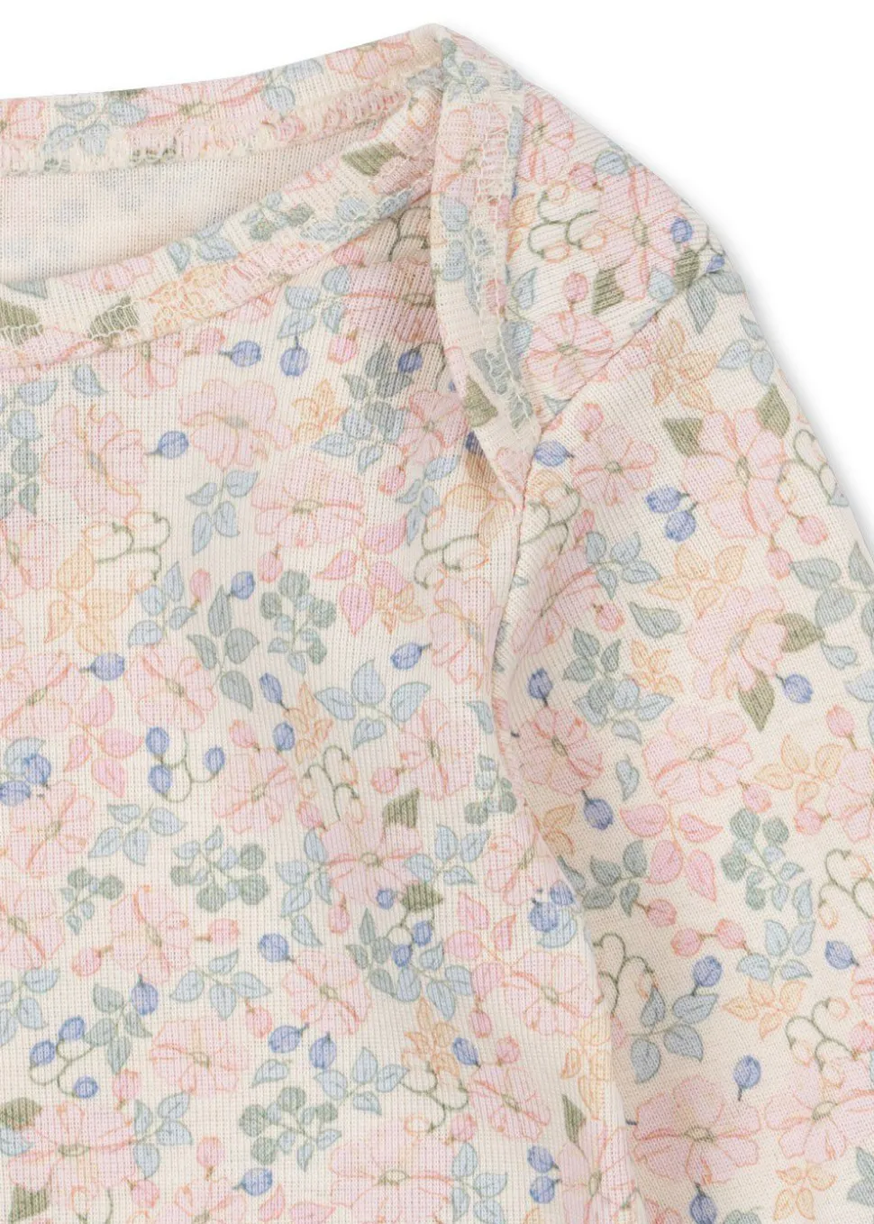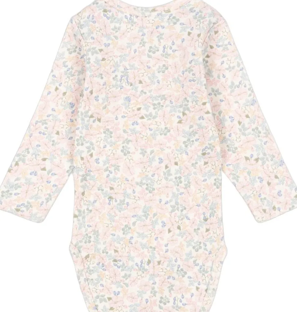 Blød bodysuit i økologisk bomuld med lange ærmer. Fremstillet i en fleksibel ribbe med en praktisk kuverthalsfunktion, der gør den nem at tage af og på, samt nemme trykknapper mellem benene til bleskift