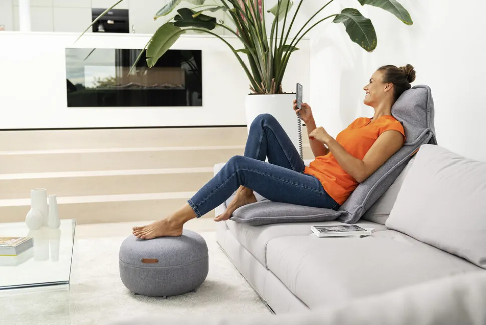 Anvendelsen af FM 120 er enkel med den ledningsfrie fjernbetjening, der nemt kan gemmes væk under låget, når den ikke er i brug. Fodmassagen skal være tilsluttet strømforsyning under massage.