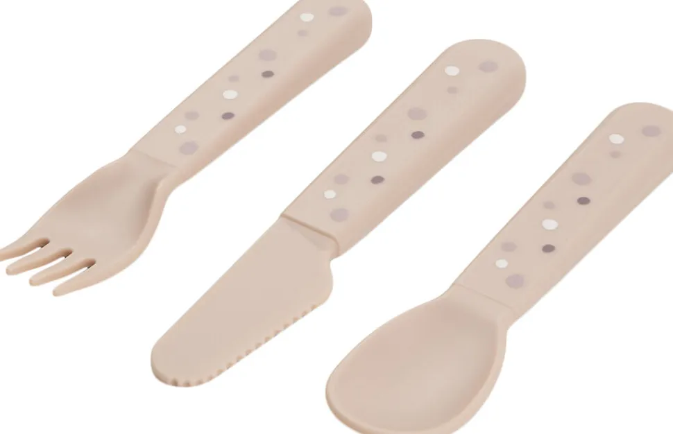 Foodie bestiksættet med Happy dots har afrundede kanter, som gør det sikkert og behageligt for dit barn at øve sig i at spise med bestik. Børnebestiksættet passer perfekt til små hænder og er gennemtestet af børn. Det søde bestiksæt til babyer og tumlinger består af en ske, en gaffel en og kniv. Efter utallige familiemiddage og børnefester kan bestikket affaldssorteres som plast og genanvendes til fremstilling af nye hverdagsprodukter. Det søde, pudderfarvede bestiksæt er pyntet med legende Happy dots, som gør ethvert måltid til en fest. Bestikket har en mat, silkeblød overflade og matcher resten af Foodie kollektionen.