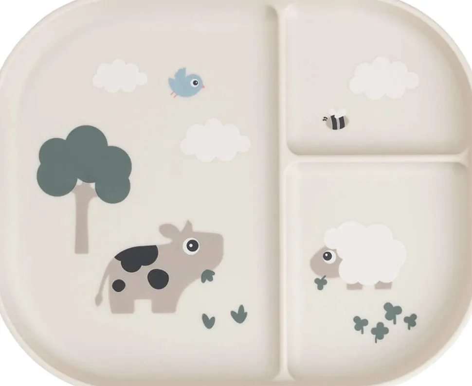 En praktisk antiskrid-base sikrer, at tallerkenen bliver på sin plads under måltidet