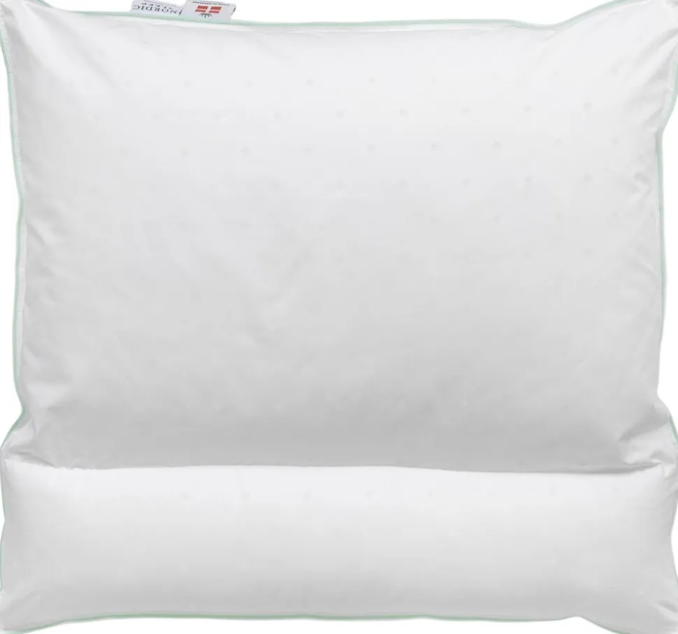 NeckSupport, ekspertstøtte og klassisk komfort i én pude. Nogle nætter sover du som en drøm, andre vender og drejer du dig. Derfor har vi skabt NeckSupport, en hovedpude, der kombinerer ergonomisk nakkestøtte med klassisk komfort. En syning deler puden i to kamre, et smalt kammer med ergonomisk støtte, der følger nakkens naturlige kurve, og et bredere kammer, der giver hovedet blød og stabil hvile. Uanset hvilken side du vælger, får du støtte, der holder hele natten. Sover du på siden, kan du folde puden for ekstra højde. Perfekt til dig, der vil prøve en ergonomisk pude, men stadig gerne vil kunne vælge. Klassisk dansk pudestørrelse 60 x 63 cm, der passer til dit almindelige hovedpudebetræk. Det er nemt at vedligeholde Nordic Sleep by Fossflakes produkternes gode egenskaber. Ryst nemt dine produkter op for at bevare volumen. NeckSupport er allergivenlig og kan nemt maskinvaskes ved 60 grader, det gør det let at holde puden ren og fri for støvmider. Undgå brug af skyllemiddel og vaskemiddel med enzymer. Fossflakes kan tørretumbles på uld eller silkeprogram. Tåler ikke høj varme. Er du i tvivl om din maskine kan overholde varmegraderne, så lad i stedet din pude lufttørre. Puden er certificeret i henhold til Oeko-Tex Standard 100 Class 1.