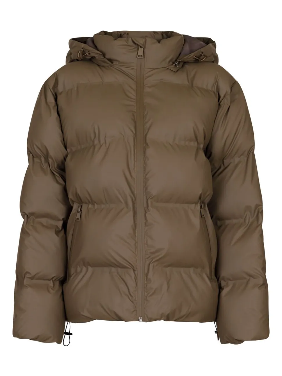 Cool vatteret jakke som er regnafvisende. Kvaliteten er blød og mat og giver et fedt look. Jakken er kort og har aftagelig hætte og justerbar vidde forneden. Modellen er 176cm og bærer en størrelse 36.