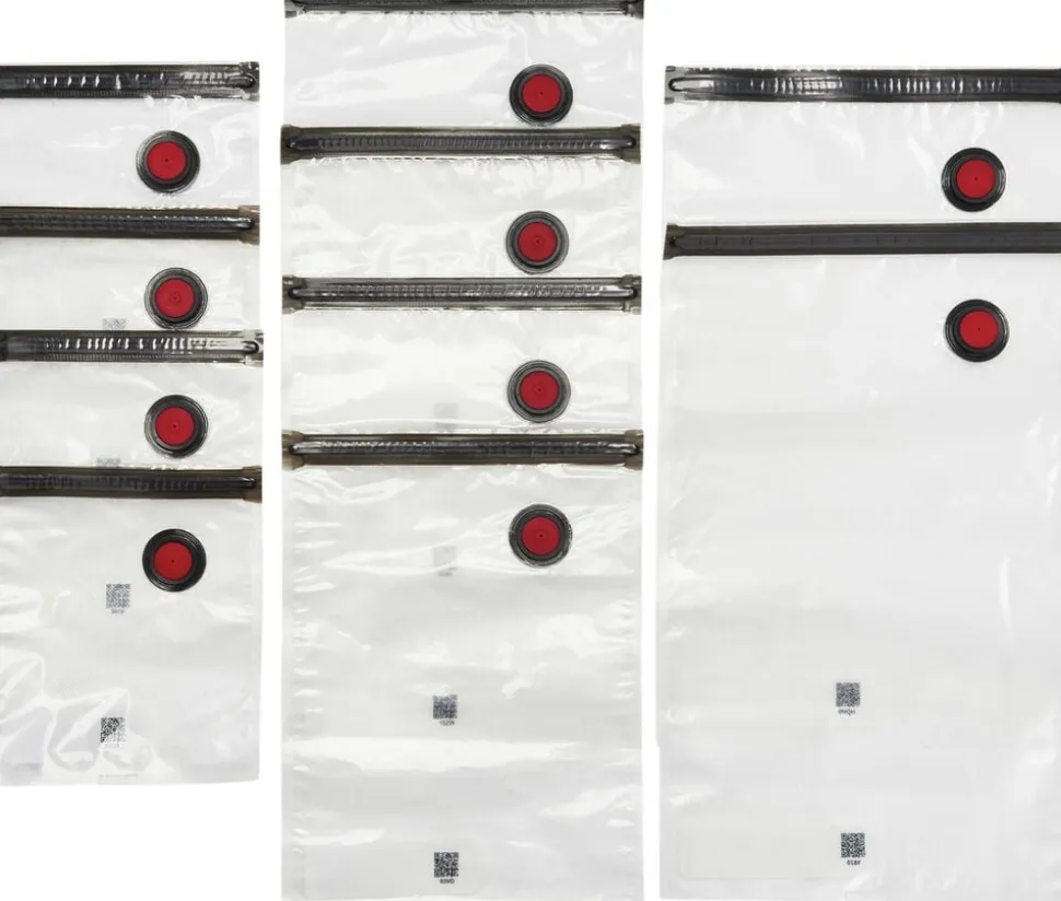 10 stk. Fresh & Save vakuumposer i str. S, m og L (8,5L.). Med ZWILLING Fresh & Save vakuumserien kan du undgå madspild, forberede mad længere tid i forvejen og hold mad friskere i op til 5 gange længere sammenlignet med andre opbevaringsmetoder uden brug af vakuum. Placér maden i vakuumposen, lad den køle helt af og placér så pumpen på ventilen. Det tager kun få sekunder at vakuumere indholdet. Pumpen stopper automatisk, når rette vakuum er opnået. Herefter kan vakuumposen lægges i køleskabet eller fryseren, hvor maden holder sig frisk og man undgår frostskader. Sættet består af 10 vakuumposer i str. S. (1,25 L, Mål: 23×20 cm), M. (4 L, Mål: 35×25 cm)og L. (8,5 L, Mål: 49×30 cm) samt marinadeventil. Vakuumposerne kan gå i mikrobølgeovnen og fryseren og er derudover varmebestandige op til 100° C, hvilket gør dem ideelle til Sous vide madlavning. Disse produkter kan kombineres med produkterne fra samlemærkekampagnerne. Download Zwilling Culinary World app og scan QR koden på lågene og poserne. Appen minder dig herefter om hvornår maden skal bruges, og kommer med forslag til opskrifter, som den kan bruges i. Poserne er genanvendelige og skal vaskes i hånden.
