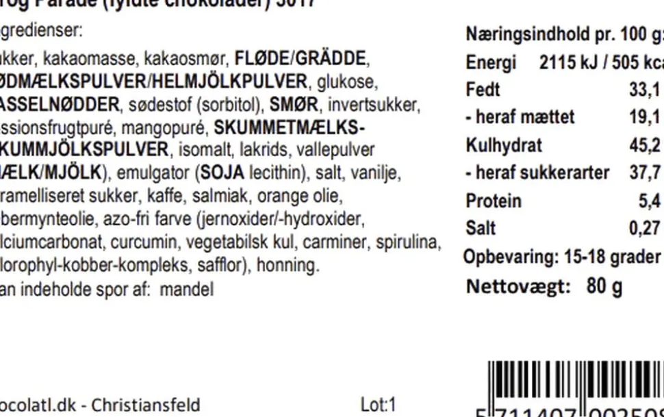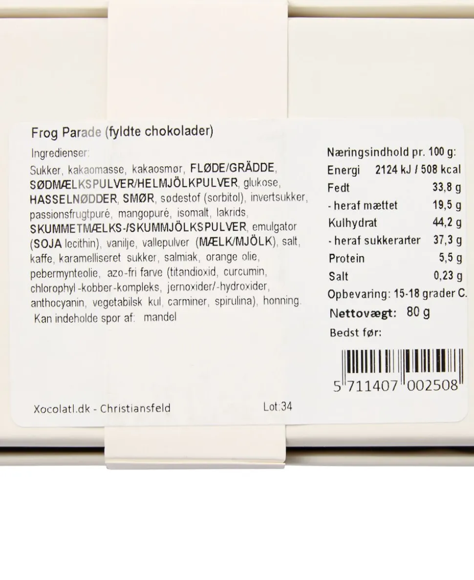 ganache, passionsfrugt, mint, creamet flødekaramel,