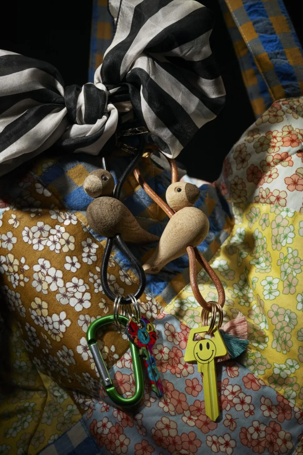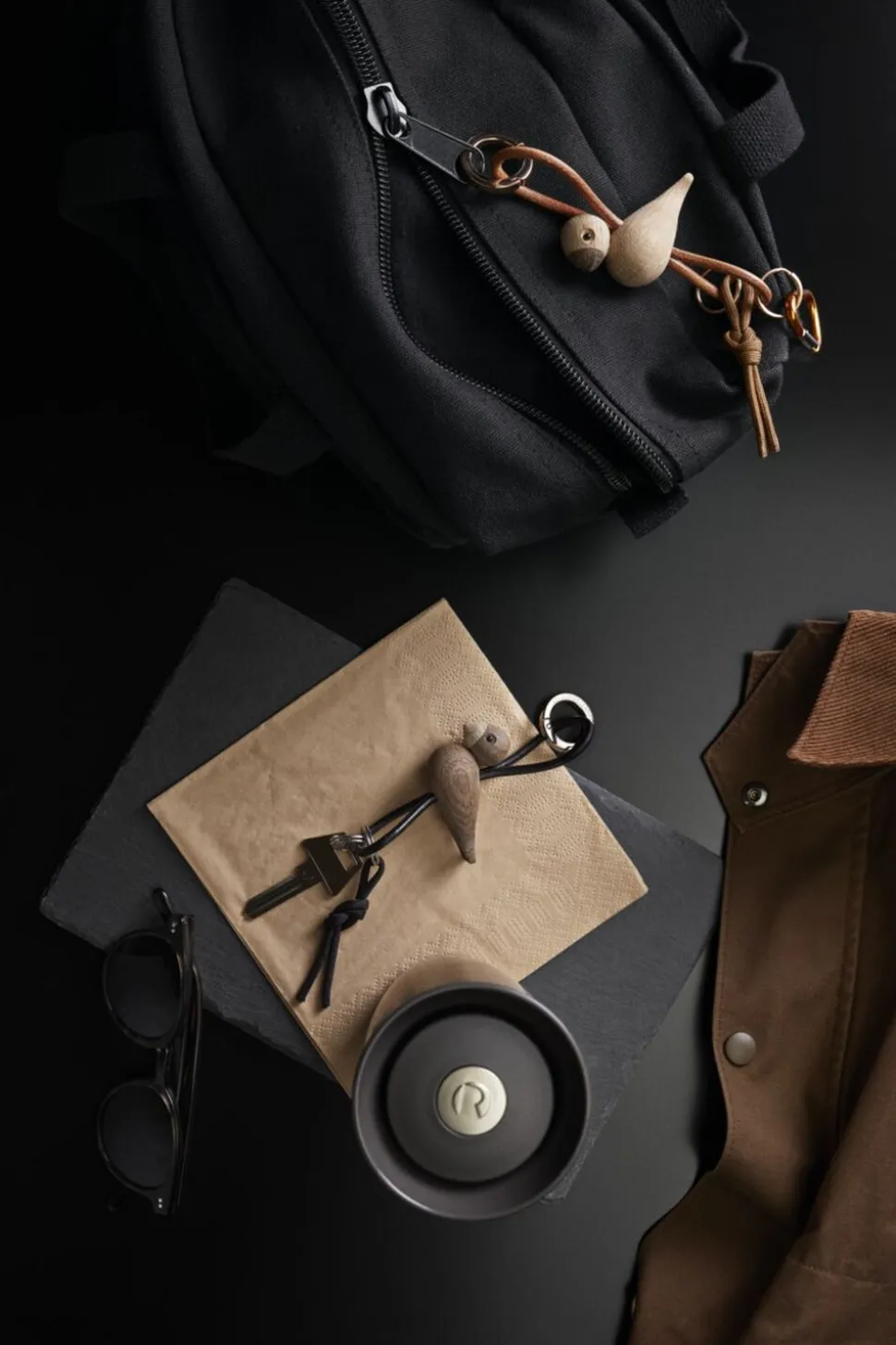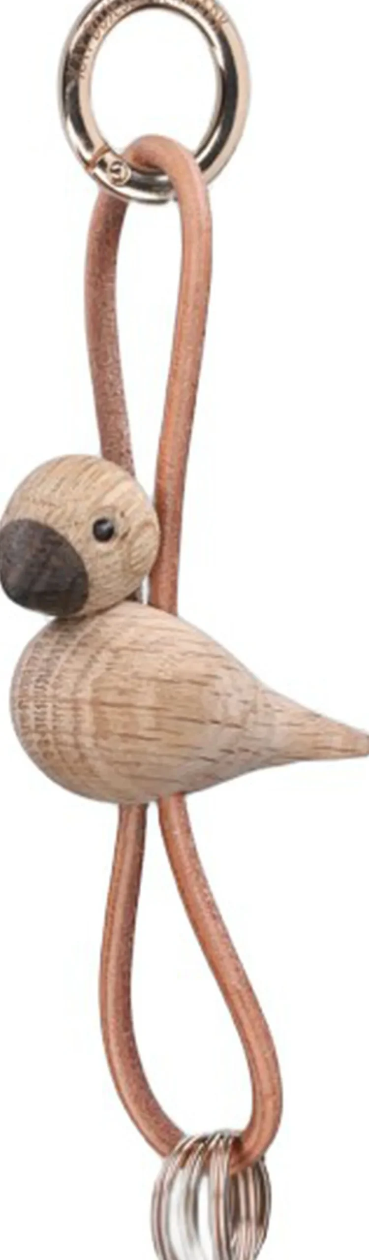 Tag Kay Bojesens elskede klassikere og din kærlighed til originalt dansk design med dig overalt. På tasken. I bæltet. Eller til bilnøglen. Med en smart og dekorativ nøglering fra Kay Bojesen Denmark kan du enkelt og stilfuldt gøre hverdagen mere personlig og tage originalt dansk design med på farten, uanset om du hægter denne variant med den klassiske sangfugl eller den legendariske abe fast som din altid trofaste buddy. Kay Bojesen var en mester i at tilføje små detaljer til sine trædesigns. Han fandt magien i naturens eget materiale, og med sit enestående formgivningstalent voksede den ene forunderlige figur efter den anden frem i hans fantasi og tog form mellem hans hænder. To af hans største klassikere er uden tvivl aben og sangfuglen. Og selvom sangfuglen i denne nøgleringsudgave er nedskaleret i volumen til en højde på bare 4,5 cm, så får du stadig masser af Kay Bojesens designarv med dig, uanset hvor turen går hen. Denne Kay Bojesen-nøglering har sangfuglen i miniatureudgave skabt i FSC®-certificeret egetræ og kommer med en både æstetisk og smart naturfarvet snor i ægte læder, der kan flyttes op og ned i forhold til figuren, så du kan skabe dit helt eget udtryk. I toppen finder du en stor guldfarvet nøglering påtrykt Kay Bojesen Denmark, der ud over at være smukt dekoreret også er udstyret med en praktisk karabinhagefunktion, der let åbnes og lukkes, og i bunden under figuren hænger tre ekstra nøgleringe, så du har god til plads til alle dine nøgler. Kay Bojesen skabte i 1922 sin første figur i træ og åbnede ti år senere butik og værksted i Bredgade i København. Lige siden har Kay Bojesen været synonym med original dansk formgivning?og design og et fantasifuldt univers af ikoniske træfigurer, der med et skarpt øje for detaljen er skabt med udgangspunkt i humor og glæden ved unikt træhåndværk af højeste kvalitet. Det er derfor, vi siger, at Kay Bojesen er original siden 1922.