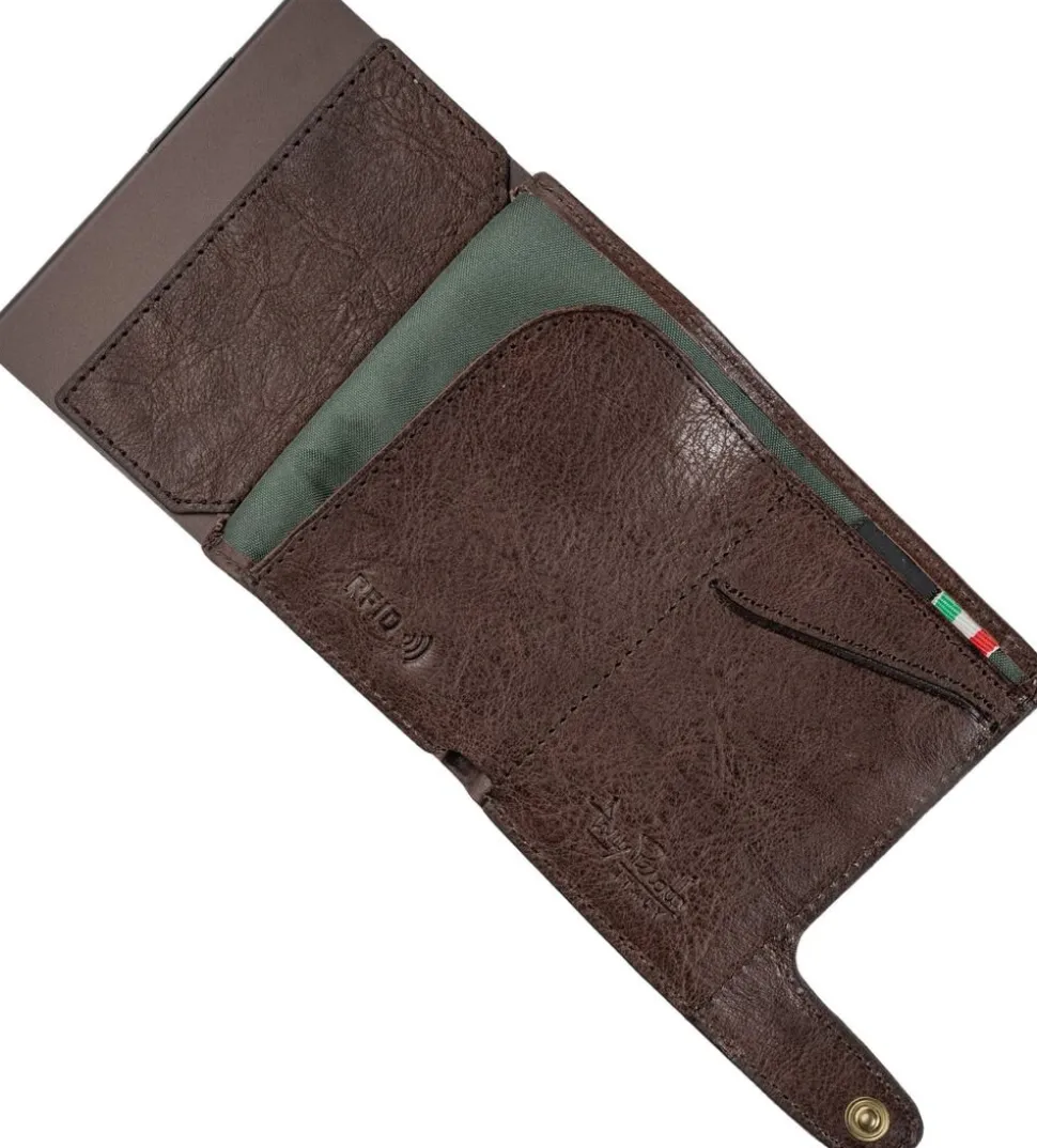 Furbo kortholder – et stilfuldt alternativ til den klassiske pung. Fremstillet i vegetabilsk garvet italiensk koskind med aluminiumskortholder og popup-system til 4–6 kort. Med plads til sedler, kvitteringer, ekstra kort samt udvendigt møntrum. Beskytter mod skader, snavs og RFID-datatyveri.