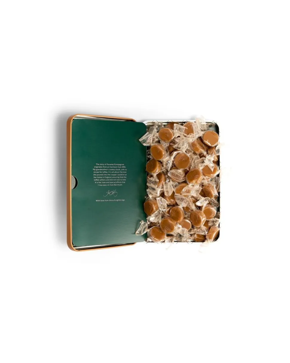 Garderen, som vi kalder denne dåse, kan bruges til utal af muligheder. Fødselsdage, studenterfester osv. Udvid gourmetoplevelsen med sprøde saltkrystaller fra Læsø Sydesalt, håndæltet ind i blød og fyldig flødekaramel i denne flotte gavedåse. Den dygtige og talentfulde kunster Mads Berg har tegnet det smukke motiv, Garderen, eksklusivt for Karamel Kompagniet.