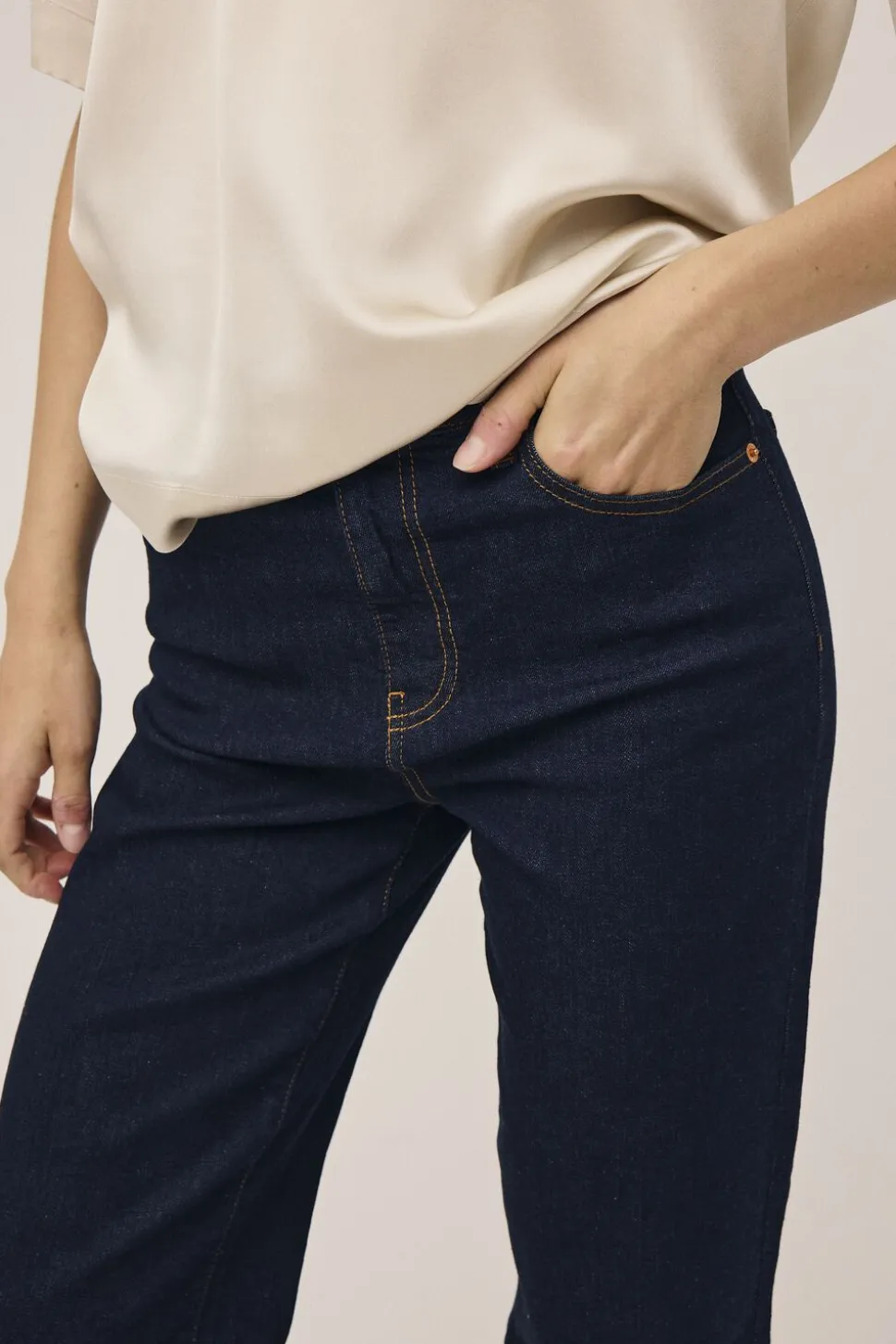 Jeans fra Magasin du Nord Collection i den blødeste kvalitet af 99% økologisk bomuld med GOTS-certificering. Bukserne er en klassisk ‘5 pocket’-model med knap- og lynlåslukning, en høj talje samt bukseben med vidde. Et par skønne bukser i en lækker kvalitet.