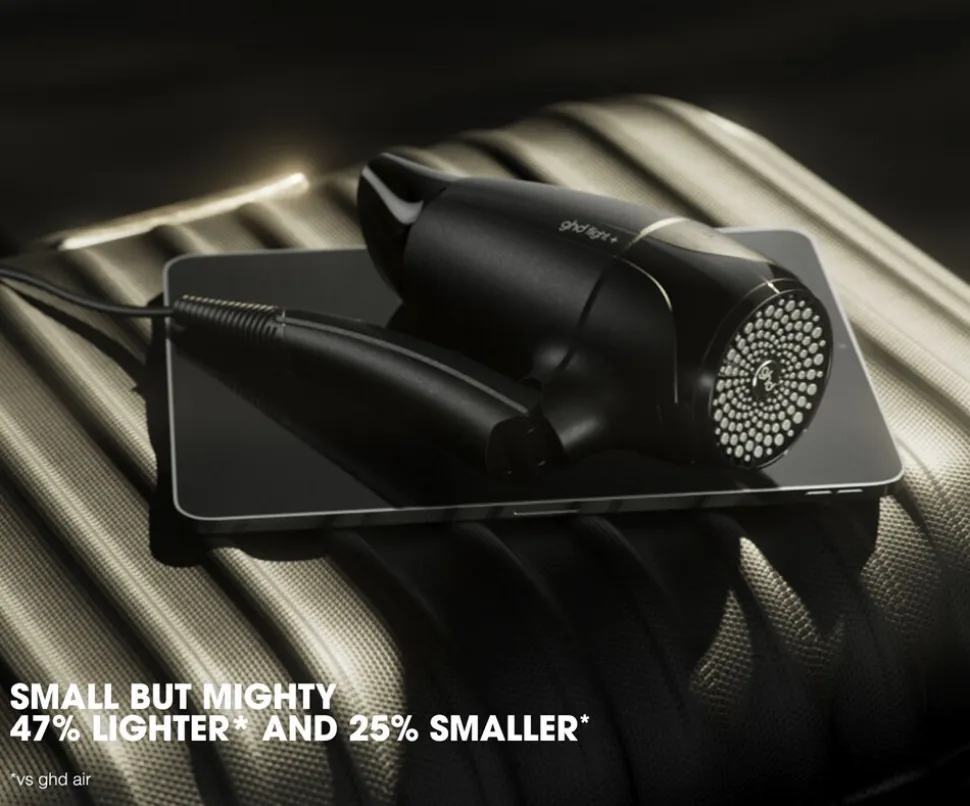 Med dobbel spenningsfunksjonalitet som passer over hele verden, kan du si farvel til hotellhårfønere og si hei til gode hårdager med ghd Flight+.