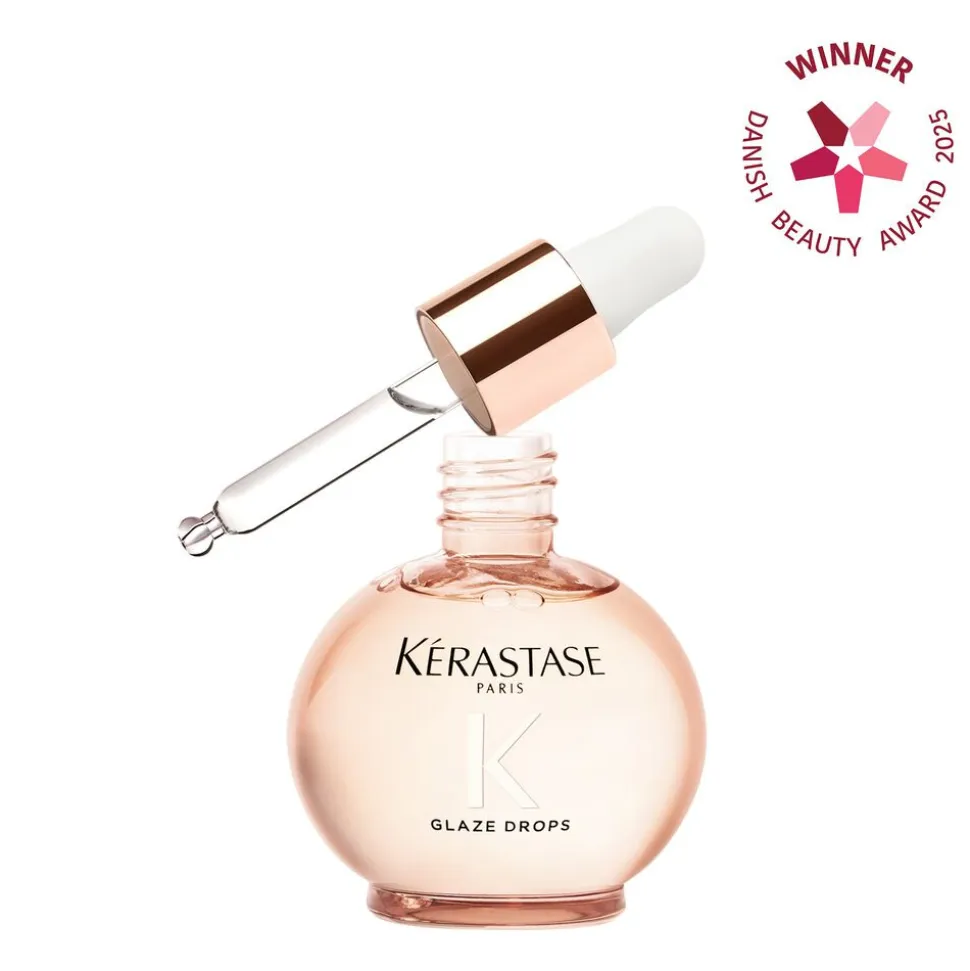 Trin 4: Påfør er par dråber af Glaze Drops hårolie i længder og spidser i tørt eller håndklædetørt hår for afsluttende glans. Skal ikke skylles ud.
