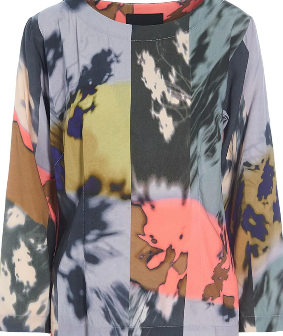 En bluse, man lægger mærke til. Det dramatiske print har et kunstfærdigt udtryk og vil tilføre garderoben et strejf af drama og personlighed. Blusen er flot sammen med bukser med brede ben i en matchende farve. Blusen er produceret i FSC-certificeret viskose og virkelig blød og behagelig at have på.
