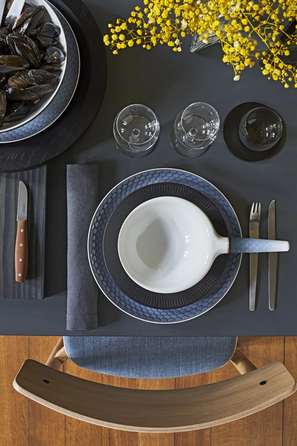 HAV er et mindre men betydningsfuldt porcelænsstel der præsenterer nye funktionaliteter og former. HAV er smukt sprøjtemalet i hånden og udsmykket med detaljer i bronze. Stellet er nænsomt skræddersyet til at være multifunktionelt – et stel, der er tidløst i både design og funktionalitet.