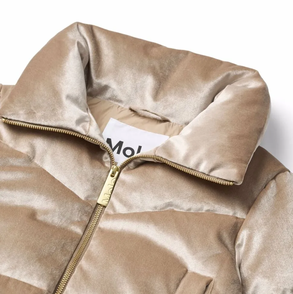 Jakke til børn i blød, imiteret pels fremstillet af genanvendt polyester.