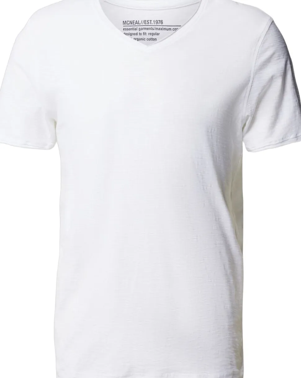 T-shirt fra McNeal i en blød kvalitet af 100% økologisk bomuld. T-shirten er enkel i modellen med korte ærmer, V-udskæring, rullekanter samt ‘Regular Fit’. En casual T-shirt i den lækreste kvalitet.