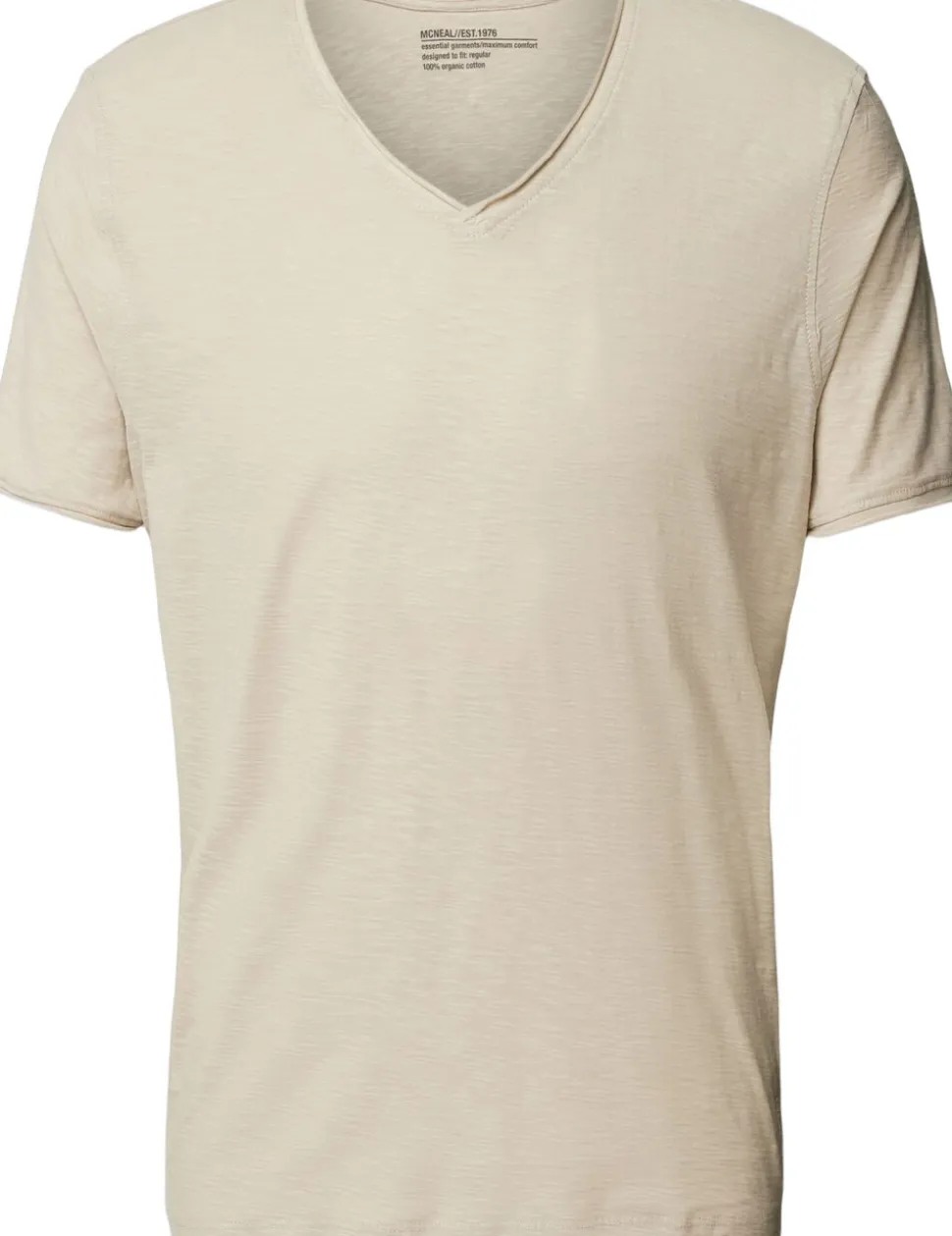 T-shirt fra McNeal i en blød kvalitet af 100% økologisk bomuld. T-shirten er enkel i modellen med korte ærmer, V-udskæring, rullekanter samt ‘Regular Fit’. En casual T-shirt i den lækreste kvalitet.