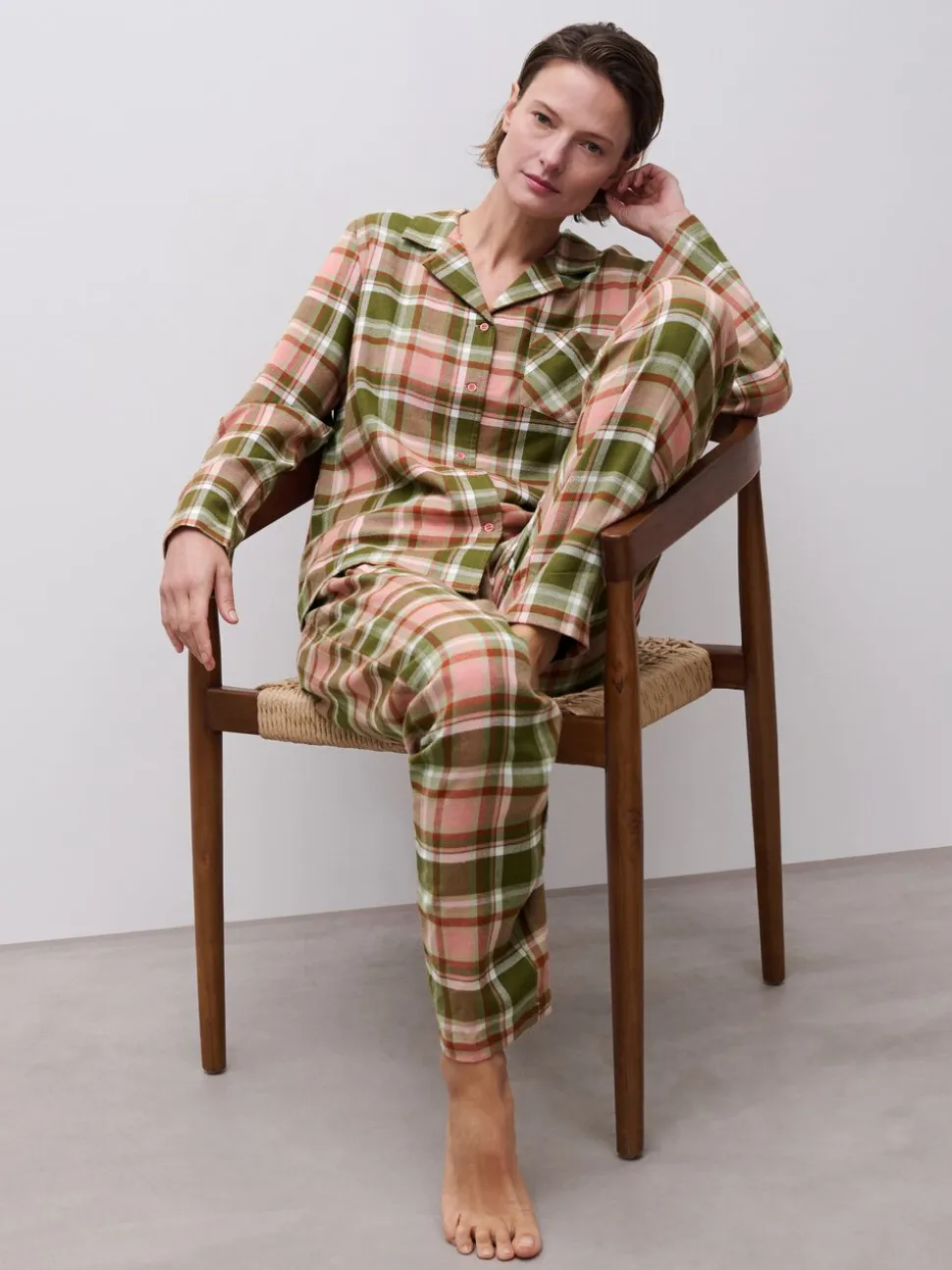Klassisk ternet pyjamas-shirt i bomuld med lange ærmer og knapper.
