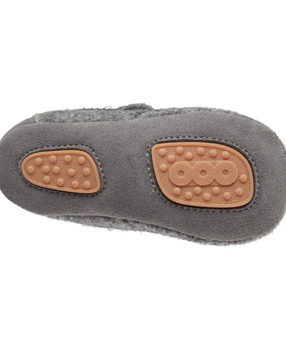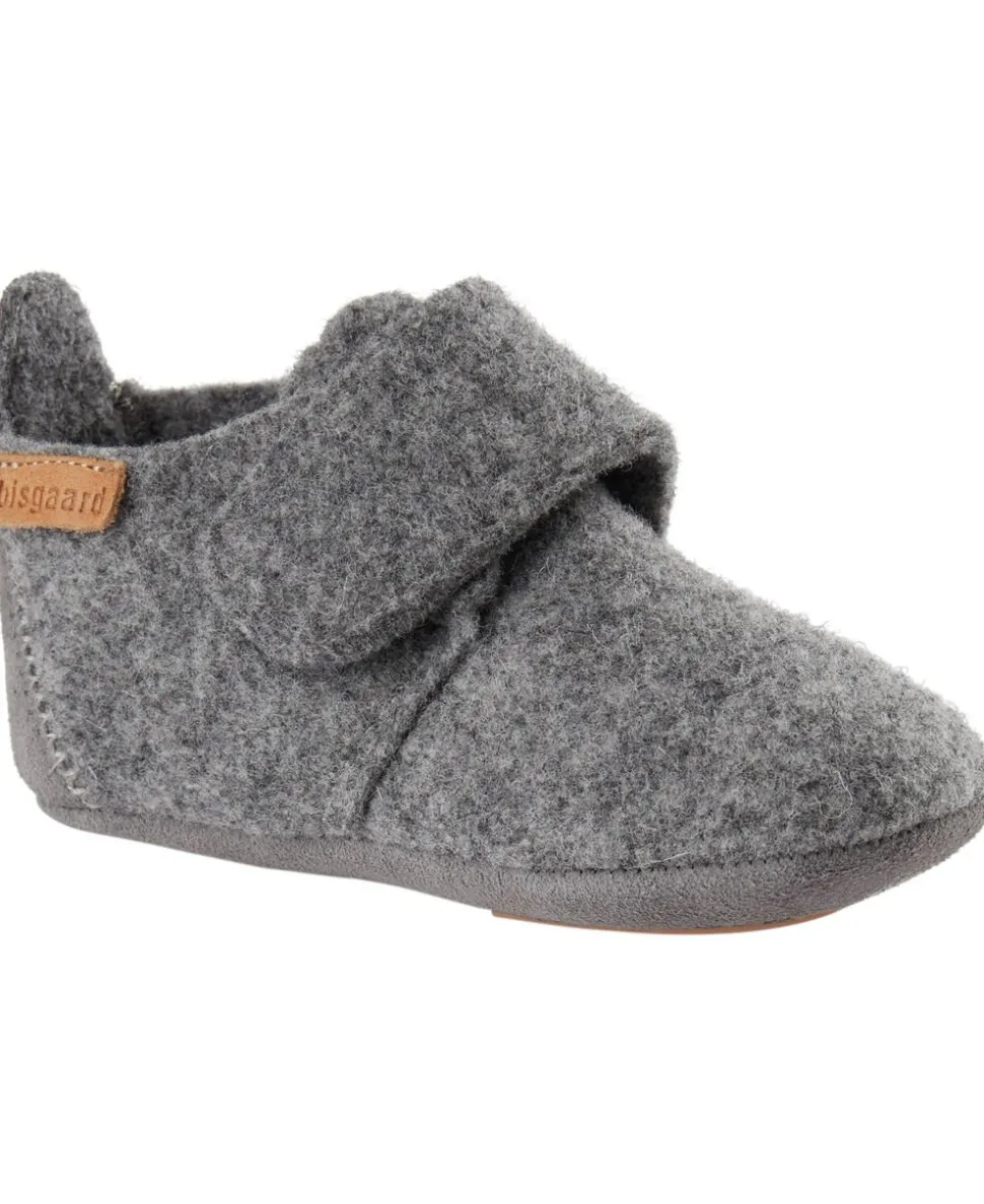 Uldhjemmesko med velcrolukning og en blød sål af ruskind og skridsikker gummi, der giver den optimale støtte. Hjemmeskoen er produceret i naturligt uld, der er lukket rundt om foden og samtidig giver foden plads til at vokse.bisgaard eco careNaturligt læder, bomuld, gummi og uld der omslutter fødderne. Fri for kemikalier, krom og metaller.Produceret i åndbart materiale.Anbefalet voksetillæg: ca. 1 cm