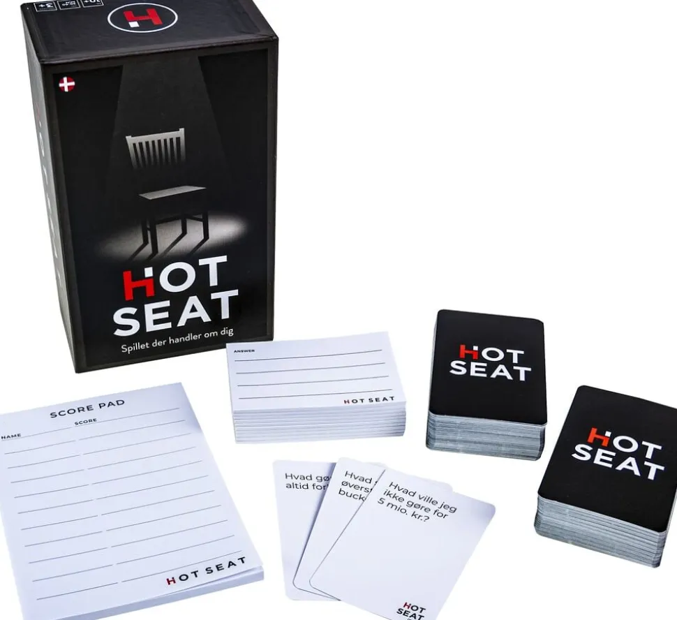 Hot Seat er et brætspil, der typisk spilles i grupper og fokuserer på at få spillere til at lære hinanden bedre at kende gennem spørgsmål og diskussioner. Indhold: 200 spørgsmålskort, 10 svar blokke, scoreblok og instruktioner. Fra ca 4 personer. Fra 10 år