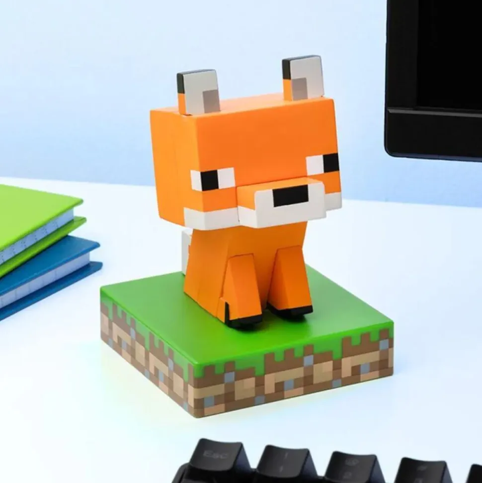 Opgrader din gamer-hule med denne officielle Minecraft Fox Icon Lampe – formet som den orange ræv-mob fra spillet og med et blødt, varmt lys, der skaber stemning. Lampen er ca. 11 cm høj og perfekt som natlampe eller dekoration ved siden af skærmen.