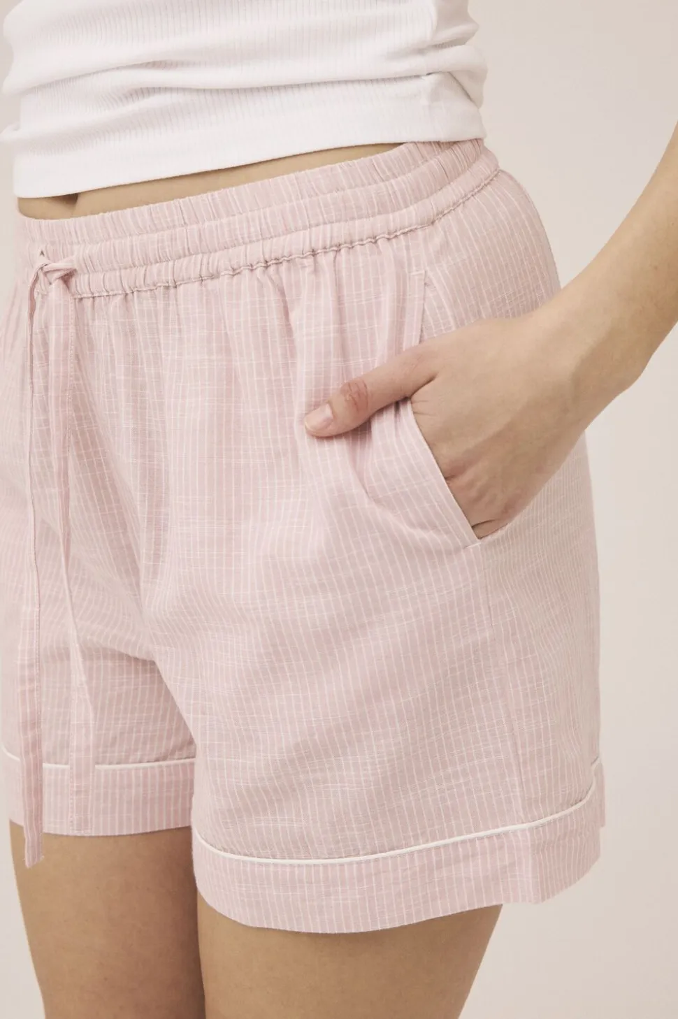 Shorts fra Magasin du Nord Collection i en blød og lækker 100% bomuldskvalitet med smalle striber. Shortsene har en løs pasform med elastik i taljen og bindebånd på fronten. Derudover har de praktiske lommer i siderne samt brede kanter forneden med pipingbånd. Kombiner dem fx med en overdel fra Magasin du Nord Collection for et komfortabelt og luksuriøst natsæt.