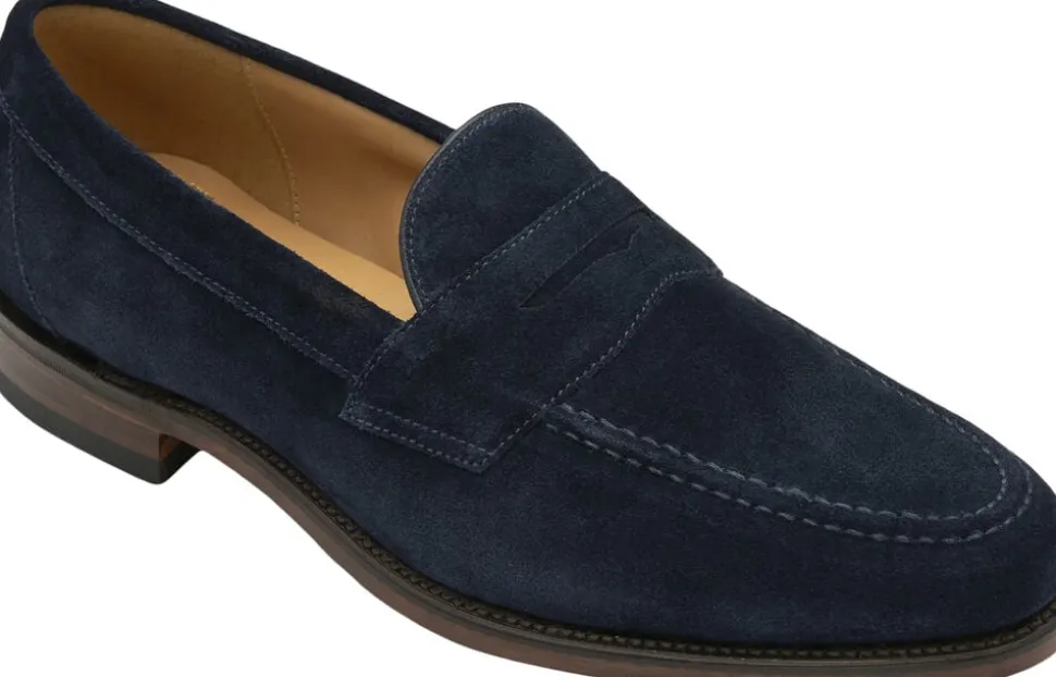Imperial Navy Suede Penny Loafer med en svejset lædersål fremstillet i Storbritannien