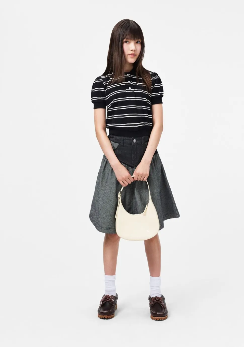 Skuldertasken er designet med en elegant buet form og en blank lakfinish, der tilføjer et strejf af stil til enhver påklædning. Med en praktisk lynlåslukning sikrer tasken, at indholdet forbliver sikkert, mens den justerbare rem gør det muligt at tilpasse tasken perfekt til dit barns behov. Det er en stilfuld og funktionel accessory til hverdagens eventyr.