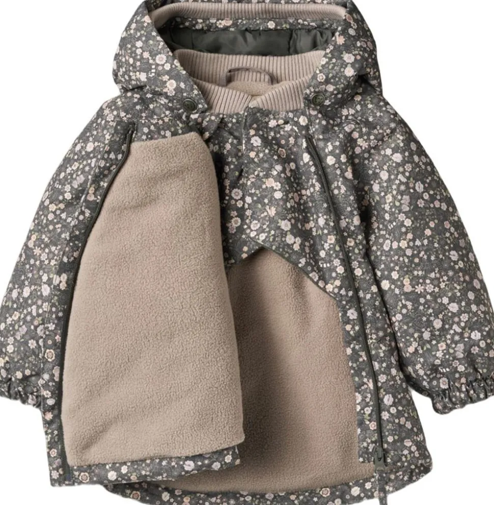 Bestseller jakke med print i anorak-look til din baby. – Normal pasform – Foret med blødt fleece på kroppen – Polyesterfor: Indvendigt i hætte og ærmer – Aftagelig og justerbar hætte med rib – Ribkrave – Skjult dobbelt lynlåse foran – Brystlomme med lommeklap – Elastik i manchetter – Reflekser – Wheat signaturprint Wheat’s jakke er lavet i åndbart, vind- og vandtæt materiale, og er perfekt til de mange kolde efterårs- og vinterdage. Den er designet med høj performance og komfort for øje, da materialet er slidstærkt og smudsafvisende og derfor nemt at rengøre og vedligeholde. Denne tekniske jakke er tænkt som en vinterjakke, da den har fleecefor og er lavet til at holde dit barn varm hele dagen lang. — Vandsøjletryk: 10. 000 mm Åndbarhed: 8. 000 g/m2/24 timer Slidstyrke: 50. 000 mm PFC-fri Fluorfri vand- og smudsafvisende finish (BIONIC FINISH ECO) Teknisk letvægts isolationsmateriale Tapede sømme GRS-certificeret — Standard 100 by OEKO-TEX® Yder materiale: 100% Genanvendt polyester Polstring: 100% Genanvendt polyester Fleecefor: 100% Genanvendt polyester For: 100% Genanvendt polyesterTeknisk jakke med trykk og anorakklignende utseende i vanntett og pustende materiale for babyen din. – Normal passform – Fleecefôr: Kropp – Polyesterfôr: Inni hette og ermer – Avtagbar og justerbar hette med ribbestrikk – Ribbestrikket krage – Skjulte doble glidelåser foran – Brystlomme med lommeklaff – Elastiske mansjetter – Refleksdetaljer – Wheat signaturtrykk Wheats tekniske jakke er laget i pustende, vind- og vanntett materiale og er perfekt for mange kalde høst- og vinterdager. Den er designet med ytelse og komfort i tankene, da materialet er slitesterkt og smussavvisende og derfor enkelt å rengjøre og vedlikeholde. Den tekniske jakken er ment som en vinterjakke, siden den har fleecefor og er laget for å holde barnet ditt varmt hele dagen. Jakken har mange praktiske detaljer som avtagbar og justerbar hette og doble glidelåser foran. Jakken kan åpnes helt, slik at det er enkelt for barnet ditt å ta den på. — Vanntett: 10. 000 mm Pusteevne: 8. 000 g/m2/24 t Slitasjemotstand: 50. 000 mm Standard 100 av OEKO-TEX® PFC-fri Fluorfri vann- og smussavvisende finish (BIONIC FINISH ECO) Lett teknisk polstring Teipede sømmer GRS-sertifisert — Yttermateriale: 100% resirkulert polyester Polstring: 100% resirkulert polyester Fleecefôr: 100% resirkulert polyester Fôr: 100% resirkulert polyester