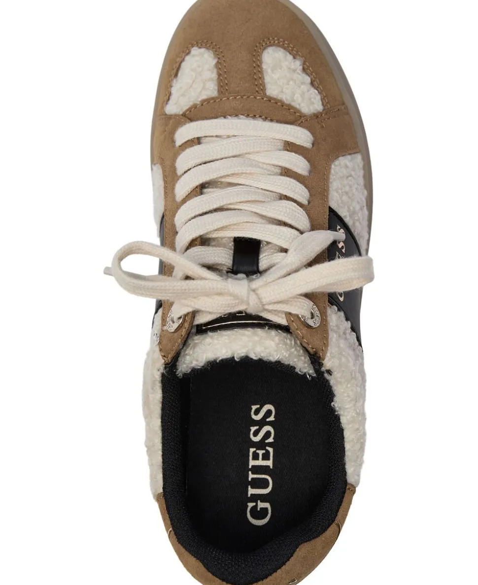Sneakers fra GUESS, der består af en kombination af flere forskellige kvaliteter, der tilsammen giver en rigtig flot effekt. Derudover er skoen enkel i modellen med snørebånd på fronten samt synings- og logodetaljer på siderne. En cool sko i en lækker kvalitet.