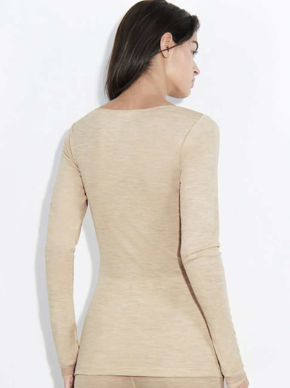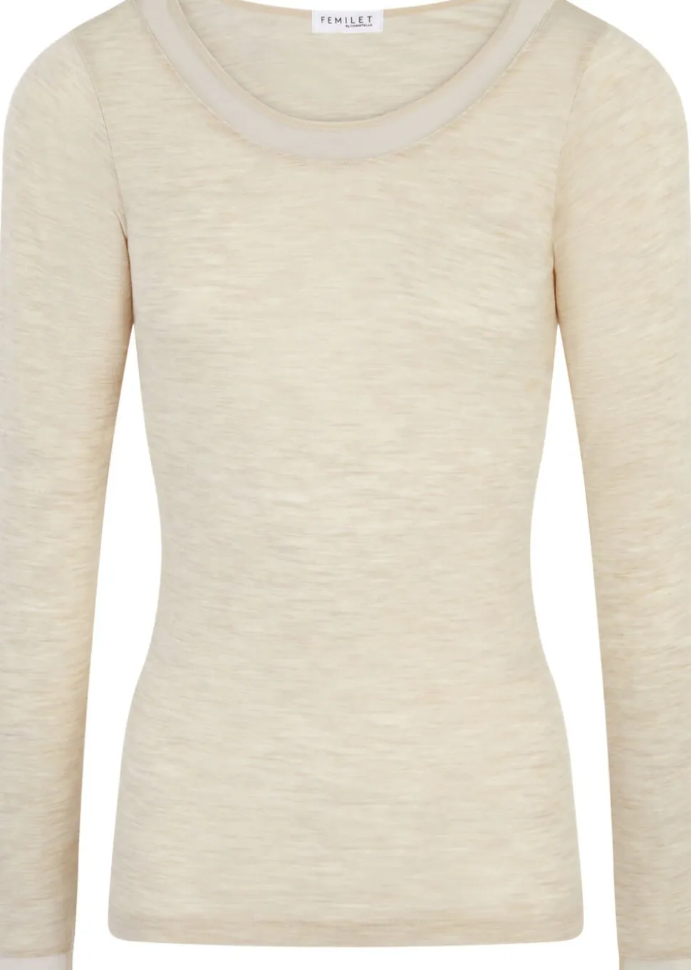 T-shirt med lange ærmer og meshkant. Kan bruges under tøjet eller som en del af outfittet.