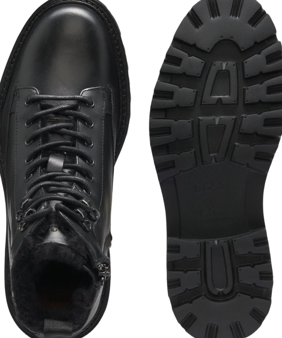 Træd ind i vinteren med det luftige for i imiteret pels fra disse halvstøvler fra BOSS herretøj. Fremstillet i rigt læder med et snøresystem i vandrestil. Dette produkt indeholder mindst 60 % bedre råmaterialer. Vi søger løbende efter mere ansvarlige måder at producere og færdiggøre vores produkter på. minimum 60 % af det læder, der bruges til at fremstille dette produkt, er indkøbt fra certificerede garverier