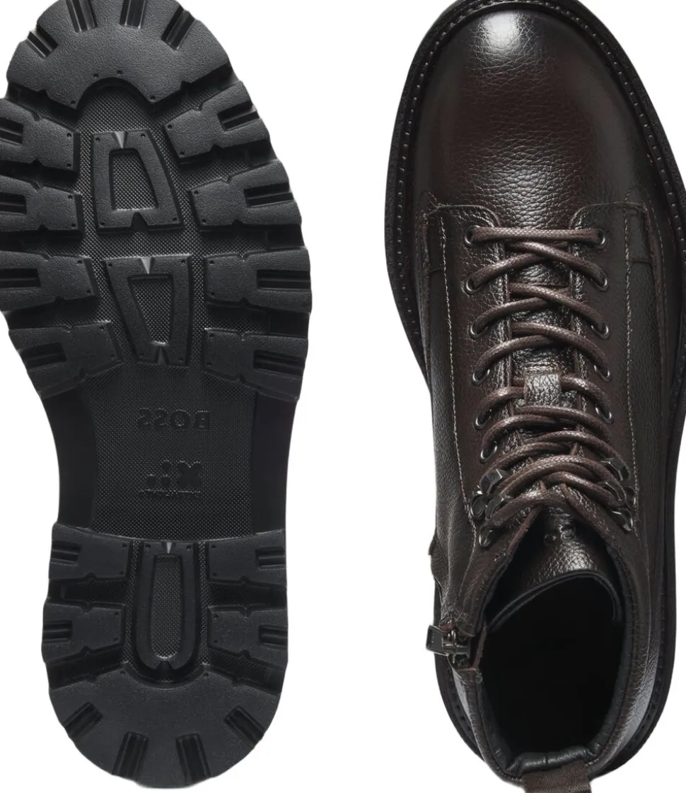 Disse halvstøvler fra BOSS herretøj i rigt kornet læder har et vandreinspireret snøresystem for en sikker, behagelig pasform. Oplysninger om logo. Smør ydersålen. Dette produkt indeholder mindst 60 % bedre råmaterialer. Vi søger løbende efter mere ansvarlige måder at producere og færdiggøre vores produkter på. minimum 60 % af det læder, der bruges til at fremstille dette produkt, er indkøbt fra certificerede garverier