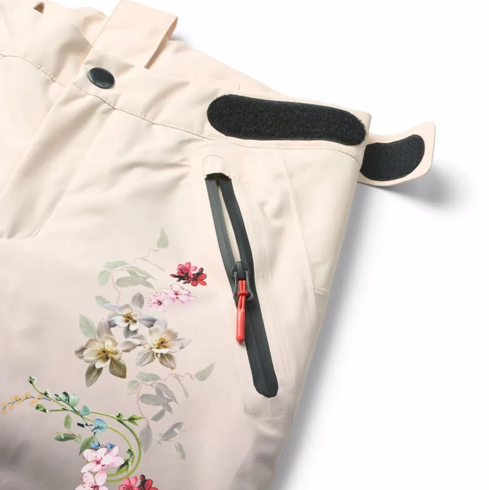 Disse overtræksbukser fra Molo er lavet i genanvendt polyester. Bukserne har trykknap- og lynlåslukning, udvendige, justerbare velcro-stropper, bælte stropper til Molos seler (ekstra tilbehør), justerbar benåbning med snefang og ekstra forstærkning mellem benene. Der er vandtætte lommer, refleks bagpå, fleece foret udsatte steder og vatteret med 3M Thinsulate.
