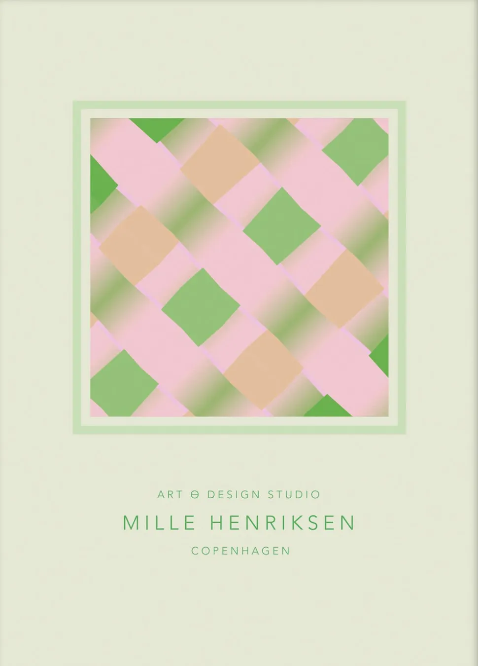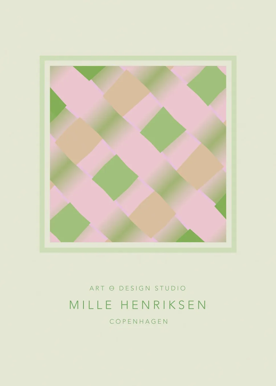 Københavns baserede grafiske designer og kunstner. Jeg nyder at eksperimentere med former, farver og teksturer, og min udtryksmåde ligger i de forskellige områder mellem det enkle og det flerlagede.Derfor finder du en stor variation i mit arbejde, der omfatter trykte samlinger, malerier og unikke genstande.”” – Mille Henriksen *Bemærk at rammer sælges separat.