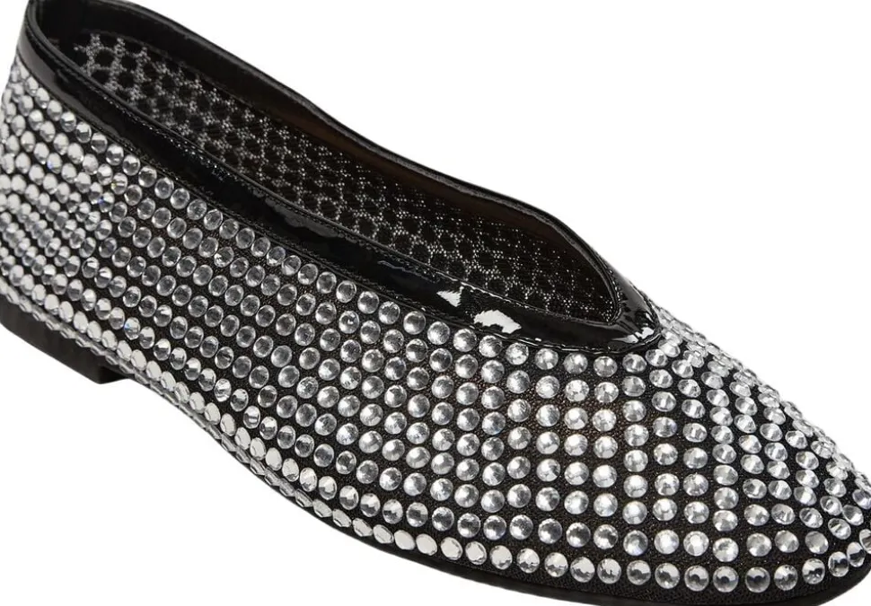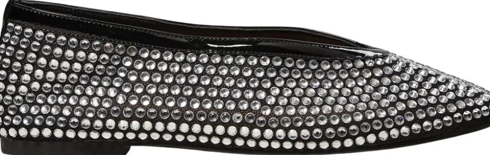 • Meshballerina • Beklædt med rhinsten • Rund tå • Sort patent-look • Flad sål • 85% mesh, 15% læder