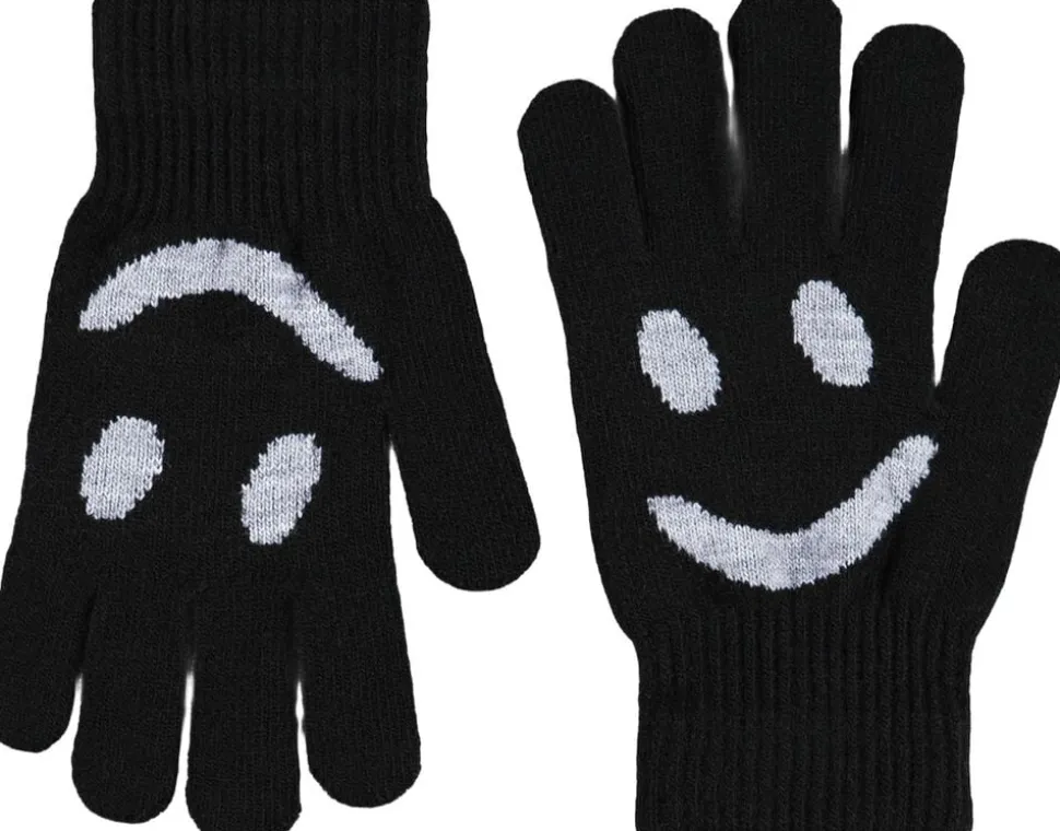 Sort ribstrikket hue fra Molo med ombuk og broderet smil i hvid.